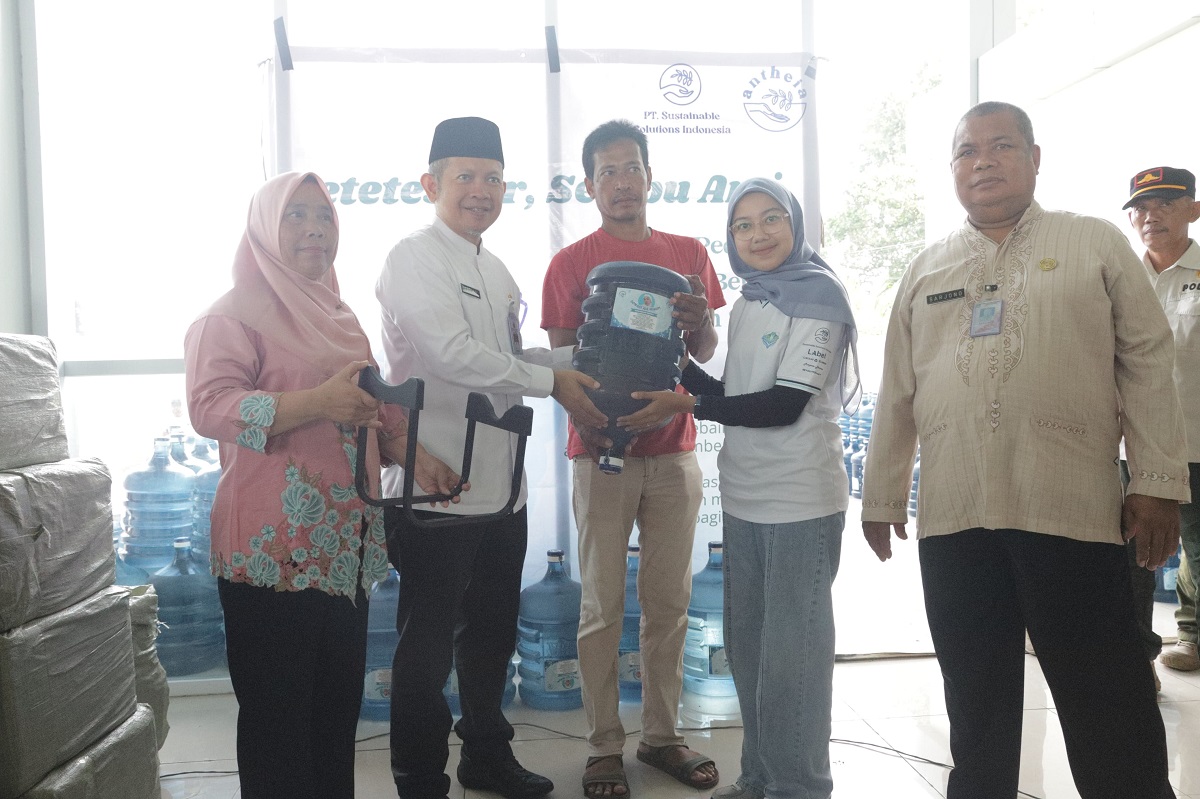 Bupati Kepulauan Seribu, Muhammad Fadjar Churniawan menyerahkan secara langsung bantuan galon air minum, kepada warga Pulau Tidung.