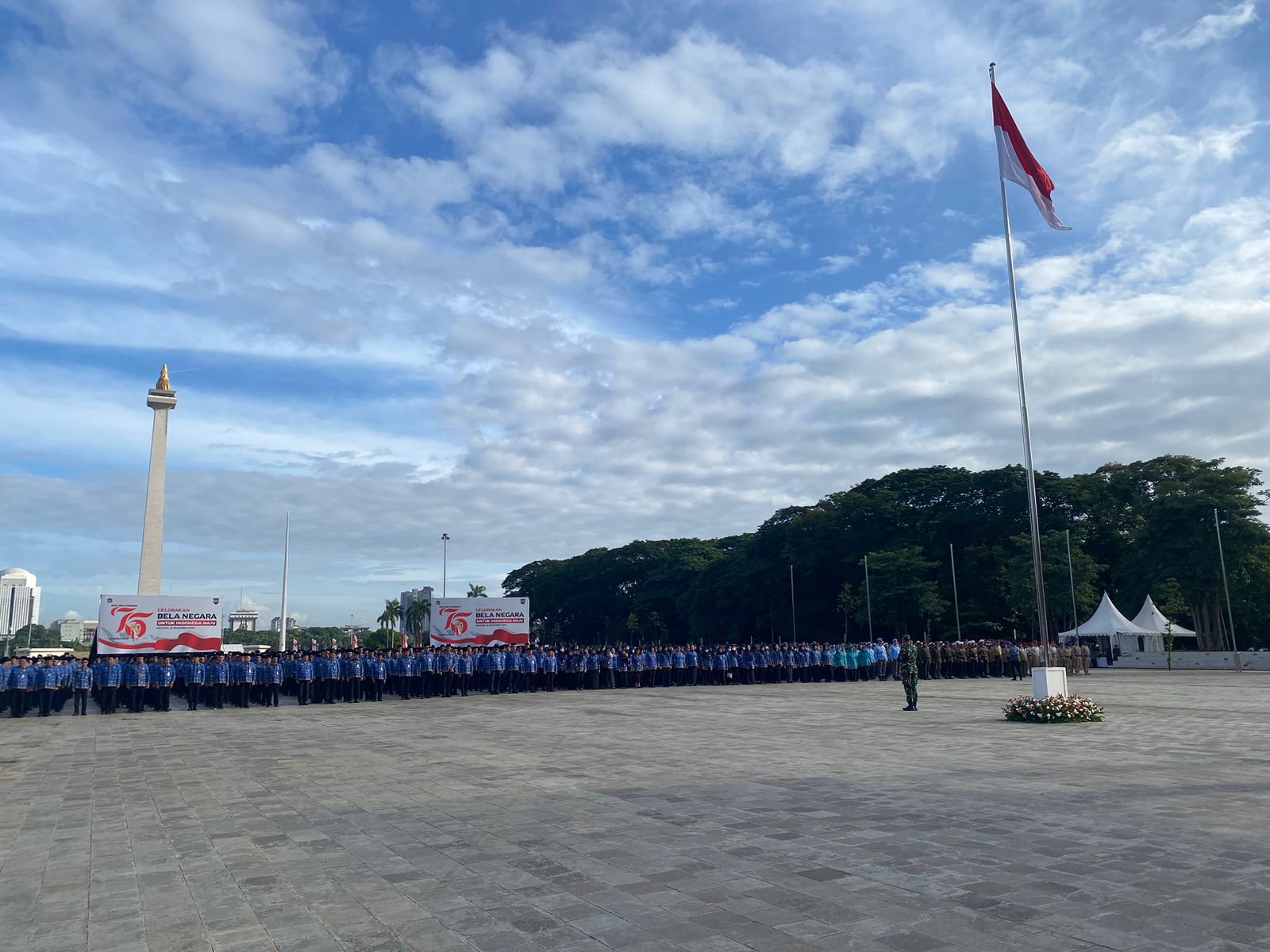 Sekretaris Kabupaten (Sekkab) Kepulauan Seribu, Eric PZ Lumbun mengikuti Upacara Hari Bela Negara ke-76 di Plaza Selatan Monas, Jakarta, Kamis (19/ ..