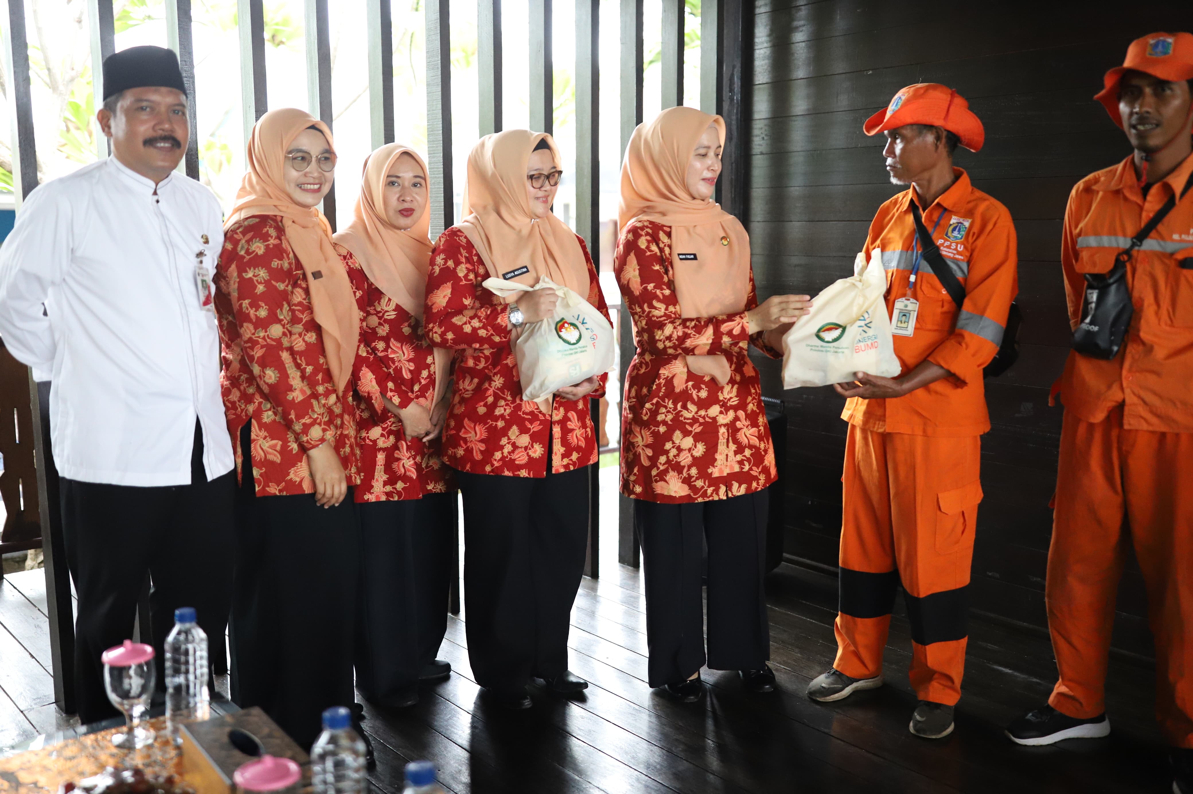 Usai menerima seratus paket bantuan Jumat Berkah, Dharma Wanita Persatuan (DWP) Kabupaten Kepulauan Seribu bergerak cepat dengan langsung mend ..