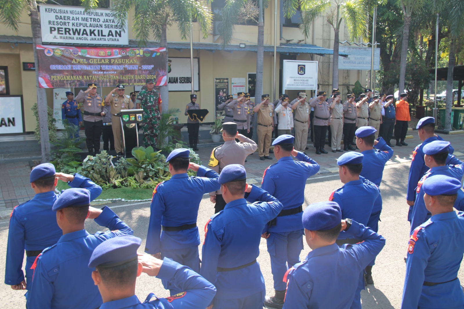 Bupati Kepulauan Seribu, Junaedi memimpin Apel Gelar Pasukan Pengamanan Operasi Lilin Jaya Tahun 2023 yang diselenggarakan di Lapangan Mako Perwaki ..