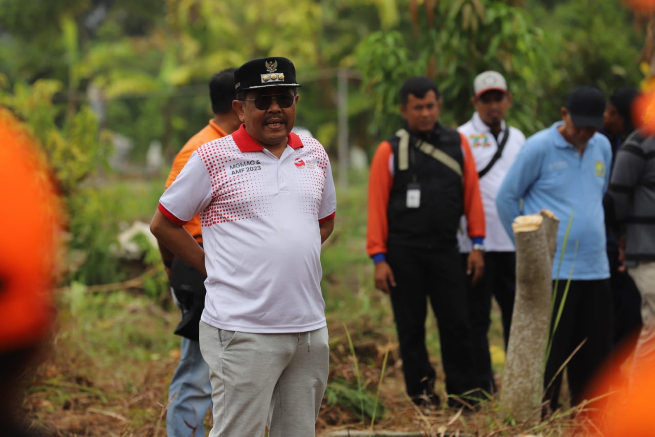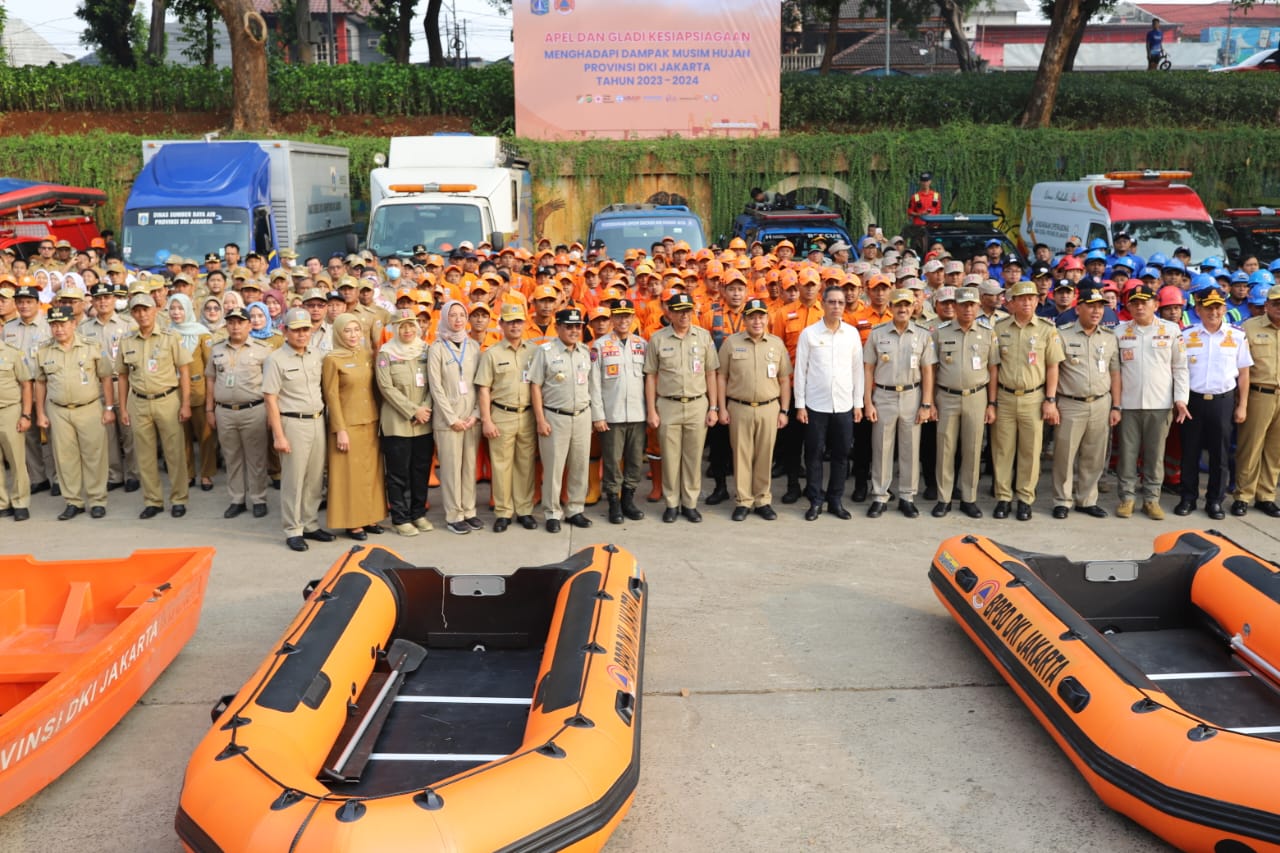 Bupati Kepulauan Seribu, Junaedi mengikuti kegiatan Apel dan Gladi Kesiapsiagaan Menghadapi Musim Hujan di Pintu Air Malaka Sari Banjir K ..