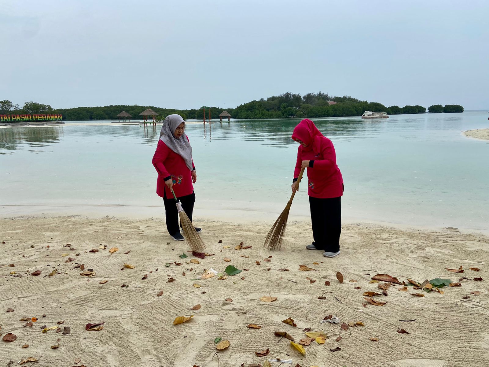 Tim Penggerak Pemberdayaan Kesejahteraan Keluarga (TP PKK) Kepulauan Seribu menggelar aksi kerja bakti di sekitar Pantai Pasir Perawan Pulau Pari, ..