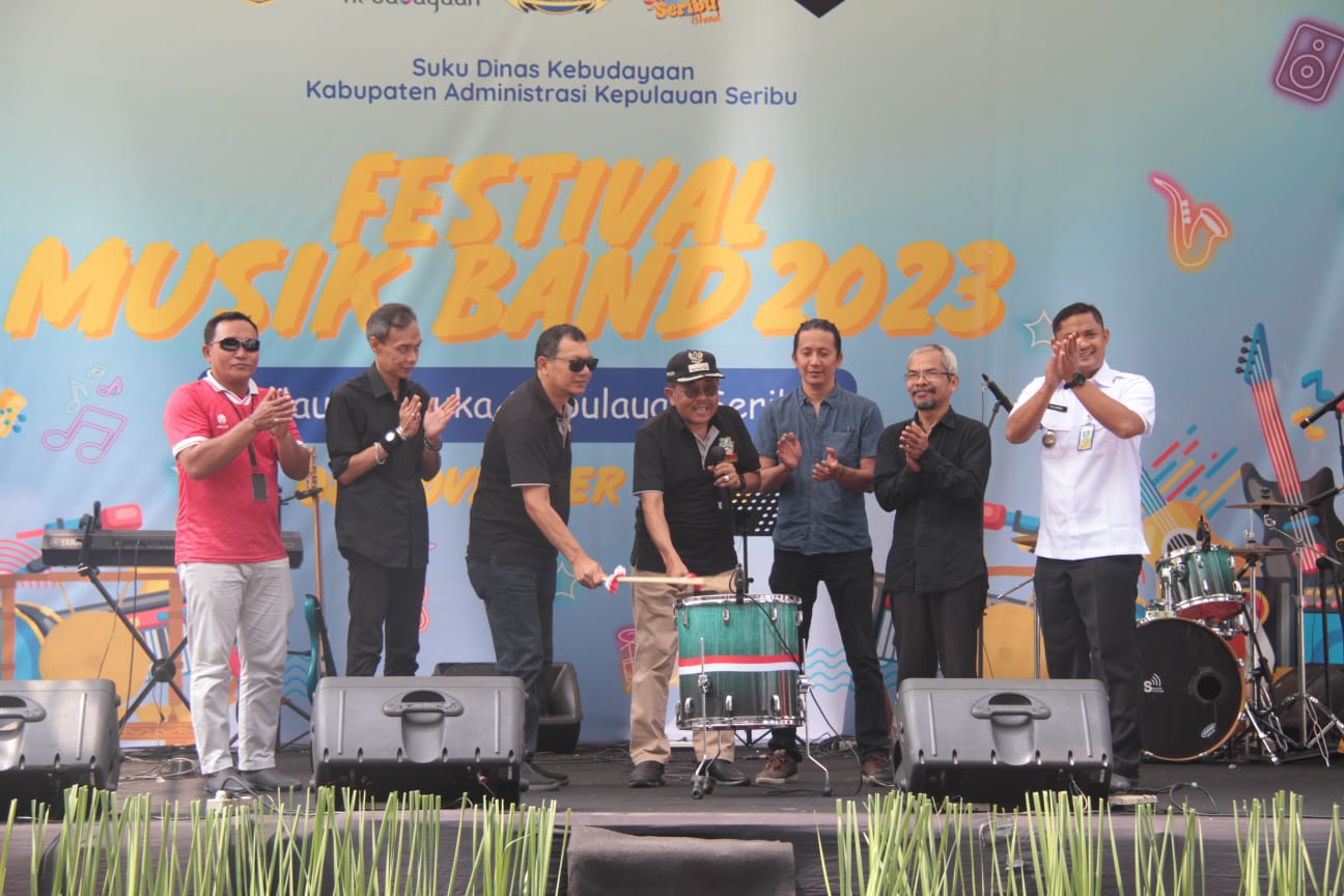Bupati Kepulauan Seribu, Junaedi membuka Festival Musik Band Kepulauan Seribu, yang diselenggarakan di Plaza Kabupaten, Pulau Pramuka, Kepulauan Se ..