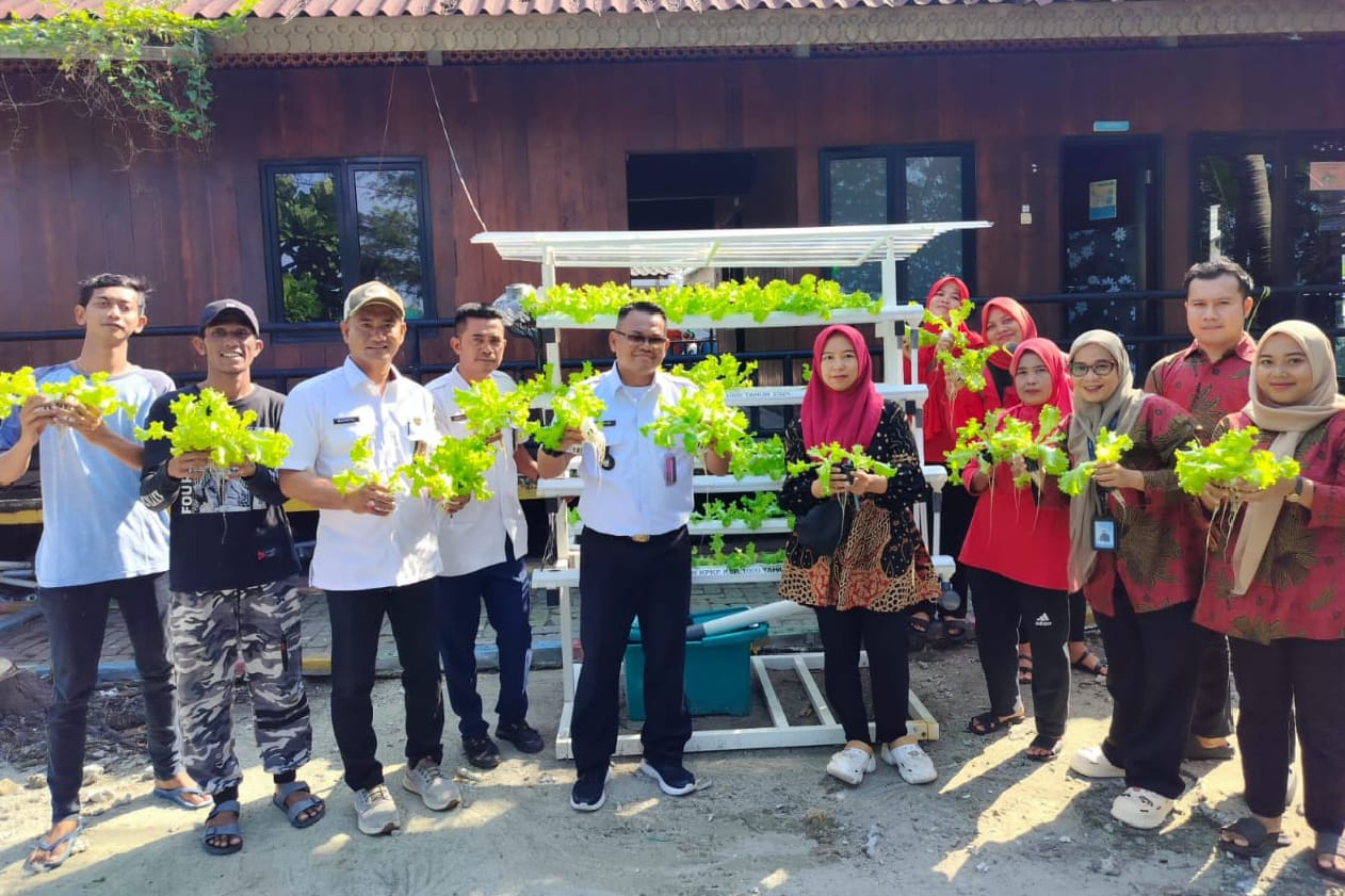 Suku Dinas Ketahanan Pangan, Kelautan, dan Pertanian (Sudin KPKP) Kepulauan Seribu, memanen hasil budi daya sayuran di RPTRA Arung Palaka, Pulau Ke ..