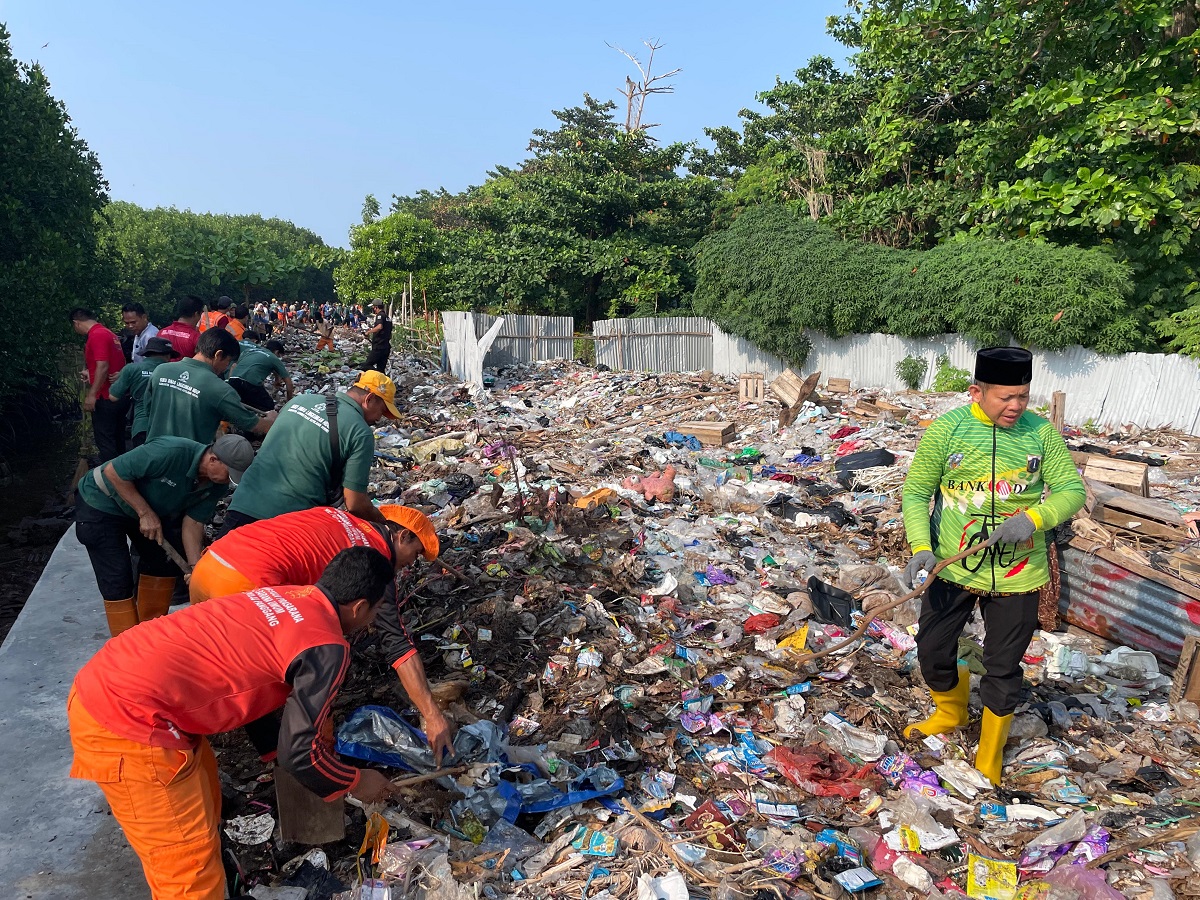 Bupati Kepulauan Seribu, Muhammad Fadjar Churniawan, memimpin kegiatan kegiatan Kerja Bakti di Lapangan Sepak Bola Pulau Pramuka, Kepulauan Seribu ..