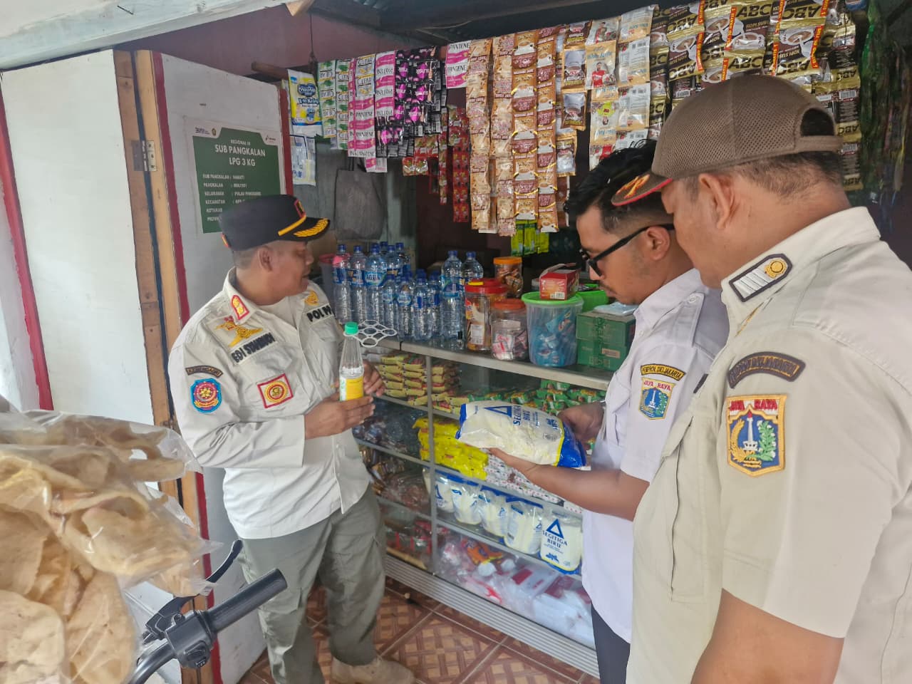 Satuan Polisi Pamong Praja (Satpol PP) Kecamatan Kepulauan Seribu Utara, menggelar pengawasan minuman keras (miras) dan produk kedaluwarsa di sejum ..