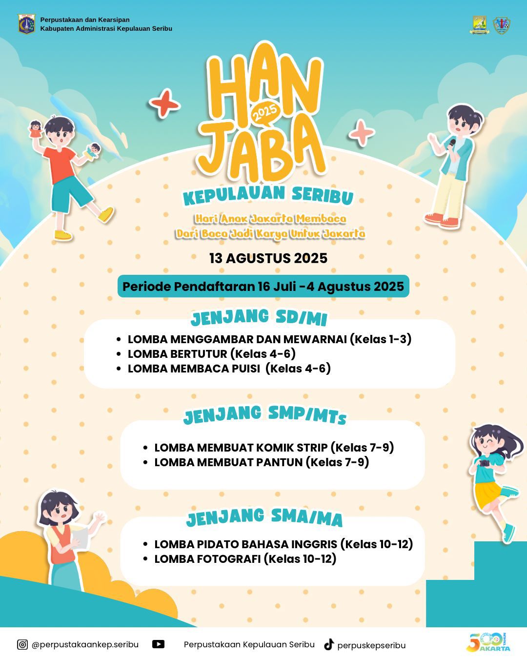 Unit Kerja Teknis (UKT) 1 Kabupaten Kepulauan Seribu, kembali menyelenggarakan Hari Anak Jakarta Membaca (Hanjaba) Tahun 2025, untuk para pelajar d ..