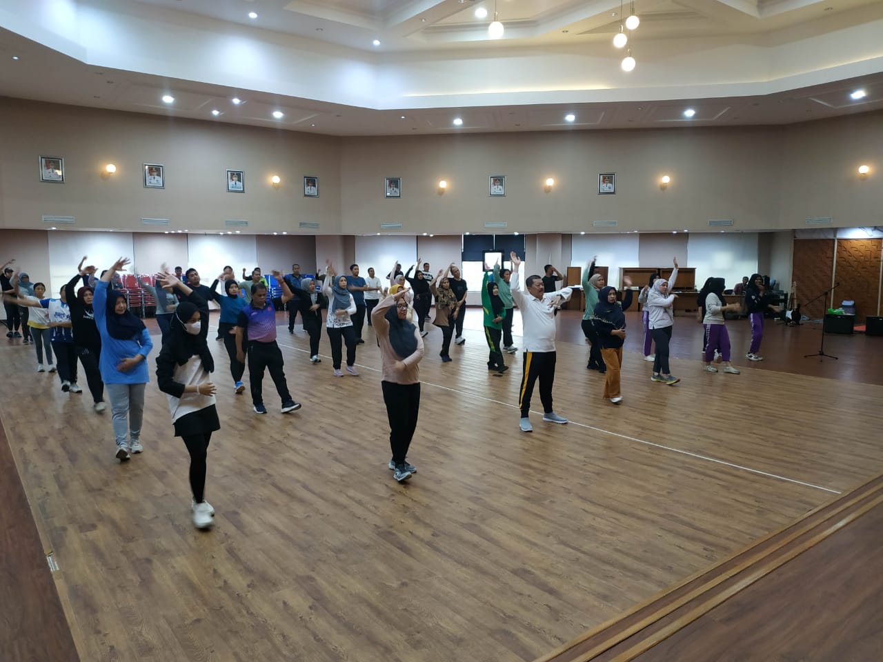 Sekitar lima puluh pegawai Aparatur Sipil Negara (ASN) Kabupaten Kepulauan Seribu, mengikuti Senam Kesegaran Jasmani (SKJ) di Ruang Penyu, Gedung M ..