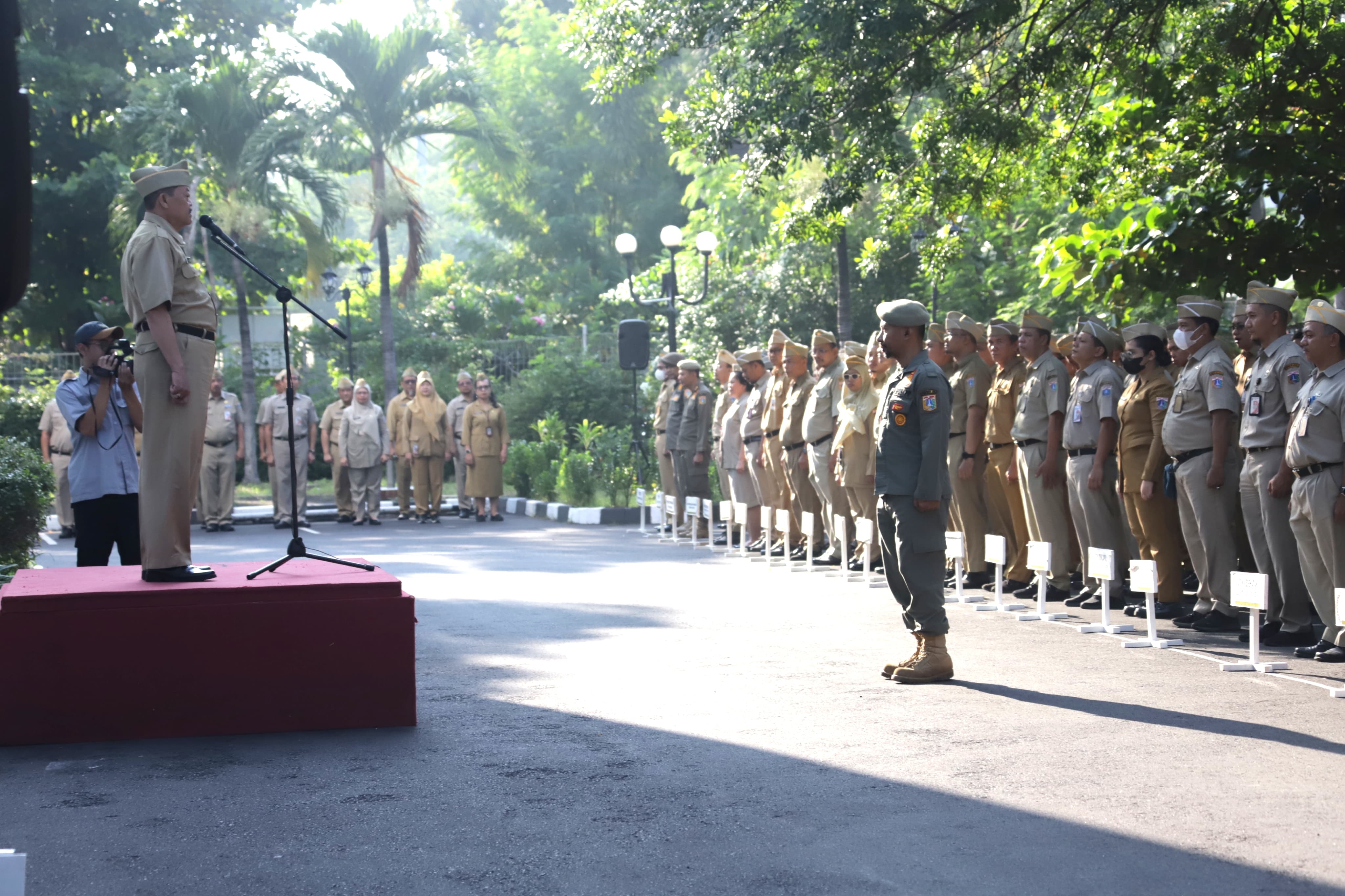 Asisten Pemerintahan dan Kesejahteraan Rakyat (Aspemkesra) Kabupaten Kepulauan Seribu, Alawi memimpin Apel Pagi Pegawai, yang diselenggarakan di Ge ..
