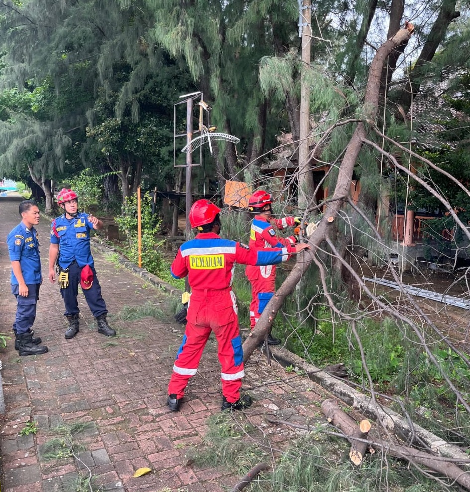 Petugas Suku Dinas Penanggulangan Kebakaran dan Penyelamatan (Sudin Gulkarmat) Jakarta Utara dan Kepulauan Seribu, berhasil mengevakuasi pohon tumb ..