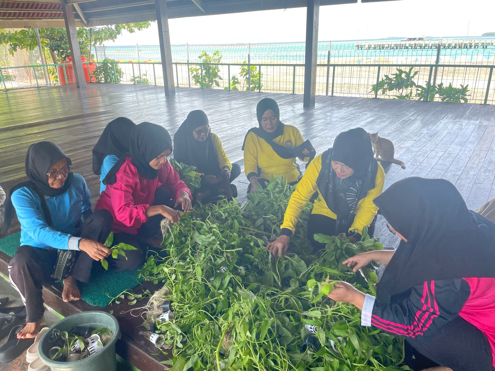 Tim Penggerak (TP) PKK Kelurahan Pulau Panggang, berhasil panen sayuran di RPTRA Tanjong Timor, Pulau Panggang, berupa lima kilogram sayur pakcoy d ..