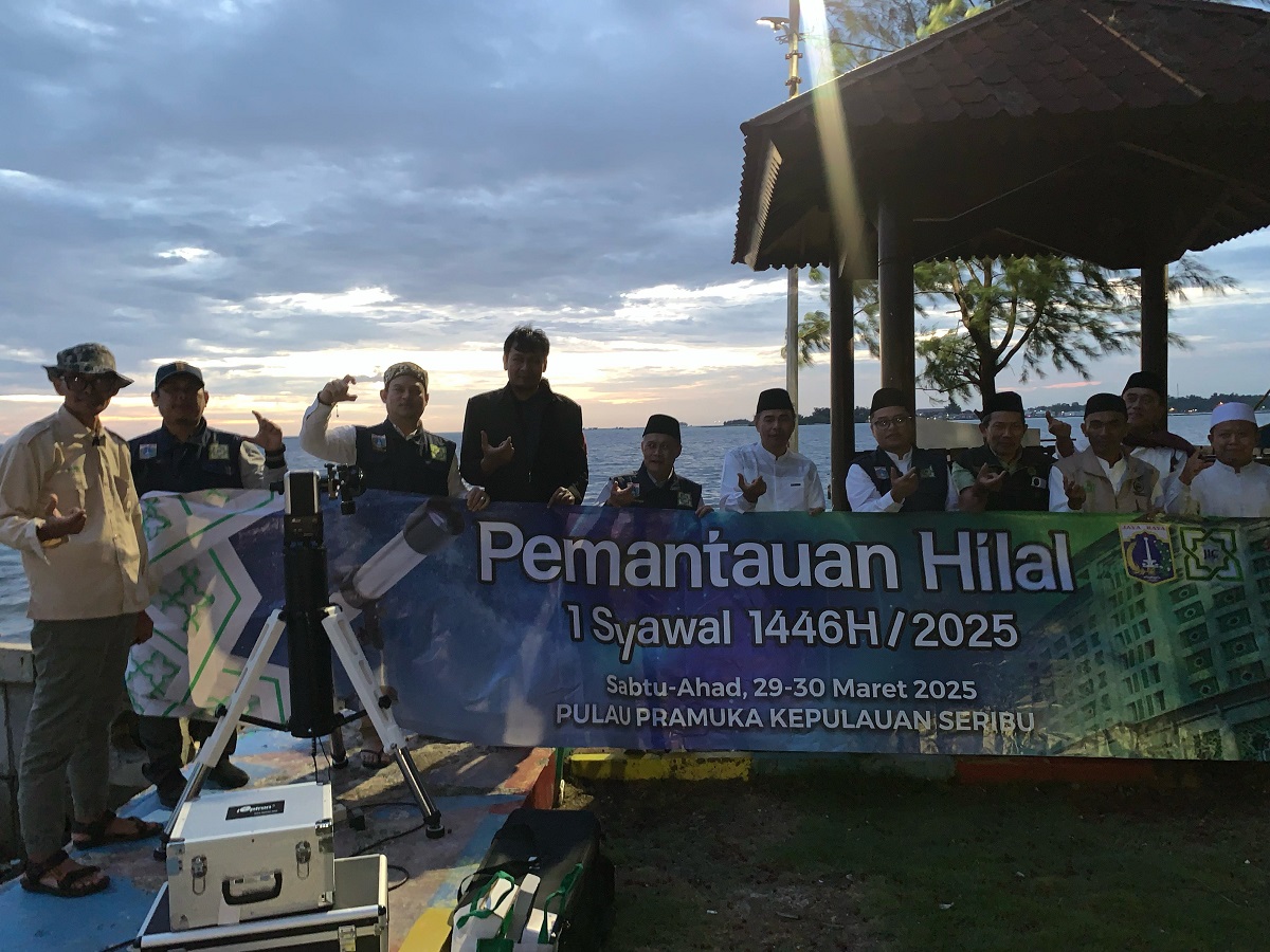 Tim Hisab dan Rukyat Kantor Kementerian Agama (Kemenag) Kabupaten Kepulauan Seribu, memantau Rukyatul Hilal untuk menentukan 1 Syawal 1446 Hijriah. ..