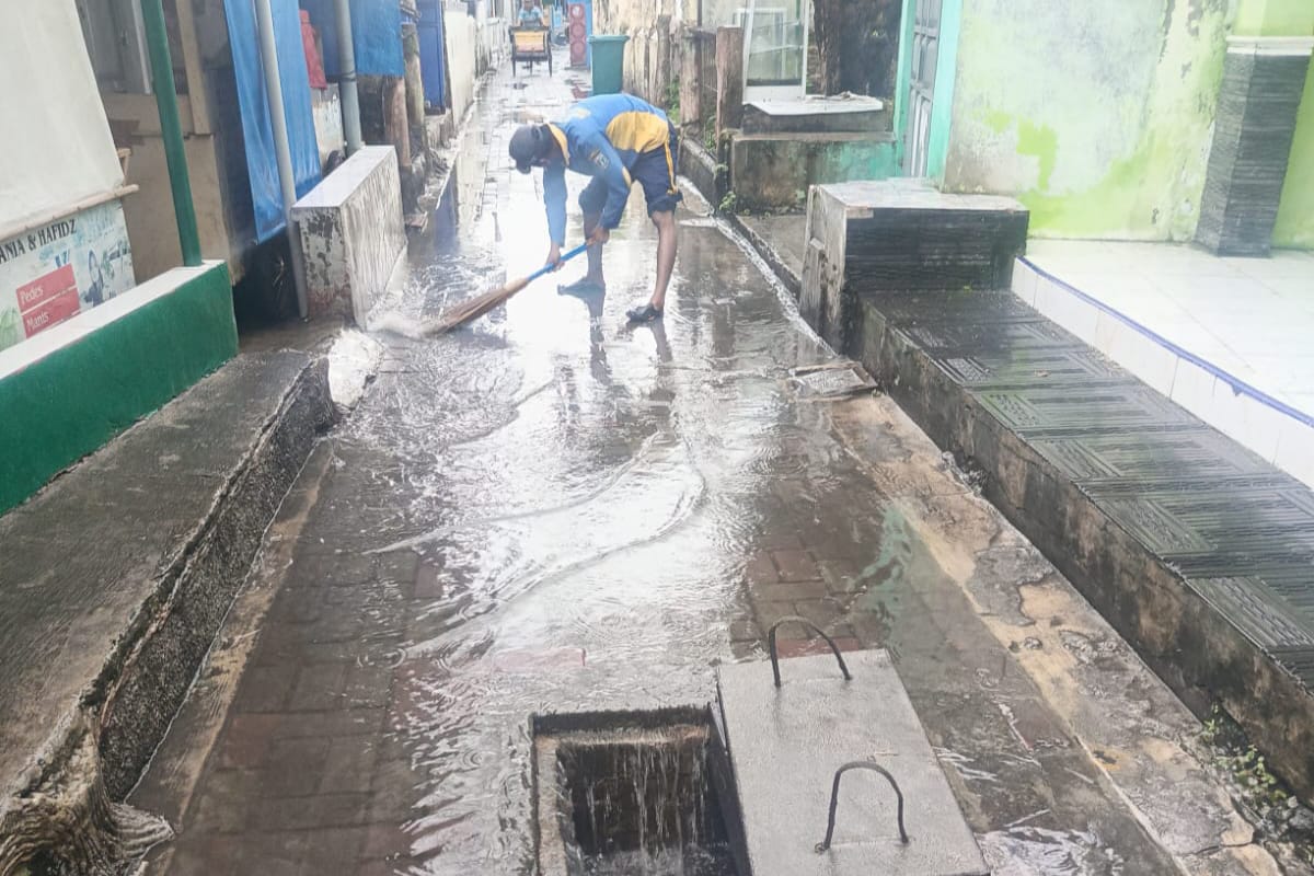 Suku Dinas Sumber Daya Air (Sudin SDA) Kepulauan Seribu, mengerahkan sembilan personel untuk mengatasi air menggenang di Kelurahan Pulau Kelapa, Ke ..