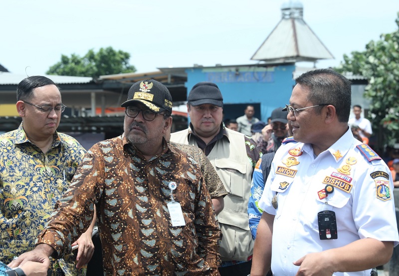 Wakil Gubenur DKI Jakarta, Rano Karno melakukan pengecekan kapal pengiriman angkutan pangan ke wilayah Kepulauan Seribu di Dermaga Marina, Ancol, J ..
