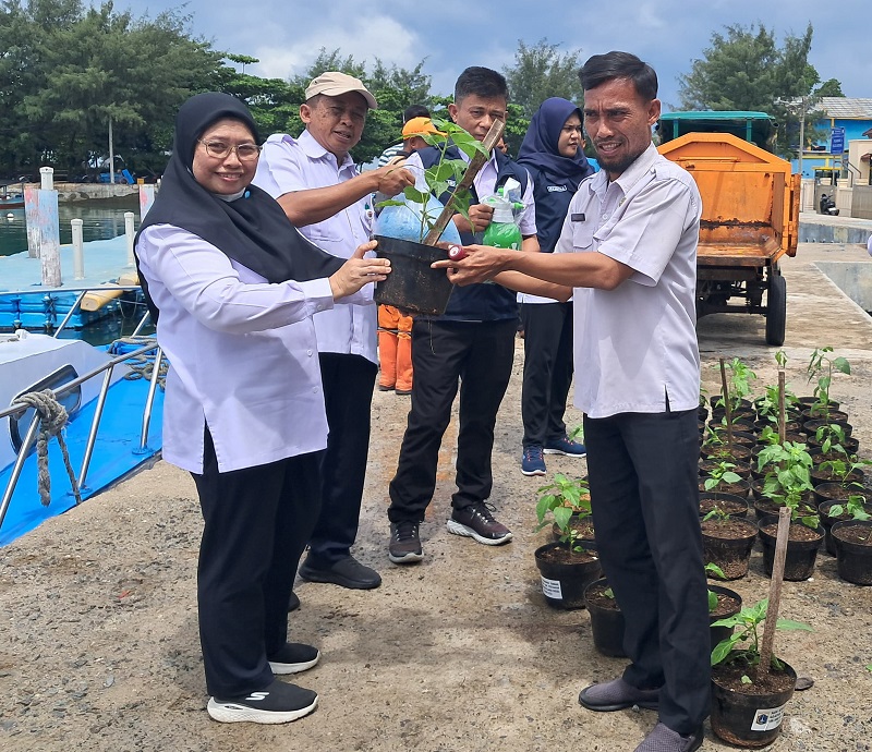 Suku Dinas Ketahanan Pangan, Kelautan, dan Pertanian (Sudin KPKP) Kepulauan Seribu, mendistribusikan tiga ratus pot bibit cabai ke enam kelurahan.< ..