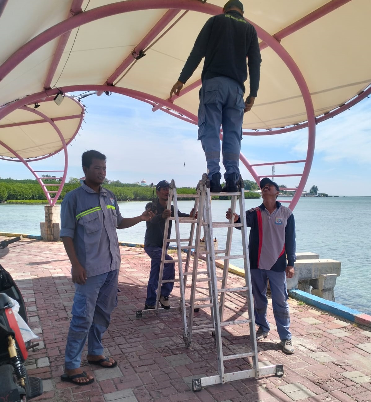 Unit Kerja Teknis (UKT) 2 Kabupaten Kepulauan Seribu, melakukan perbaikan lampu Penerangan Jalan Umum (PJU) yang ada di enam lokasi.