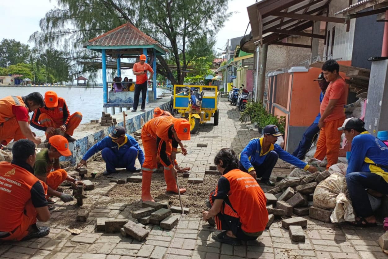 Puluhan petugas Penanganan Prasarana dan Sarana Umum (PPSU) Kelurahan Pulau Harapan , memperbaiki akses jalan permukiman warga.