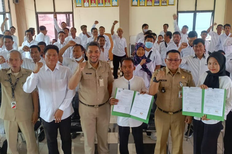 Sebanyak 67 petugas Penyedia Jasa Lainnya Perorangan (PJLP) Kelurahan Pulau Kelapa, Kecamatan Kepulauan Seribu Utara melakukan penandatangana ..