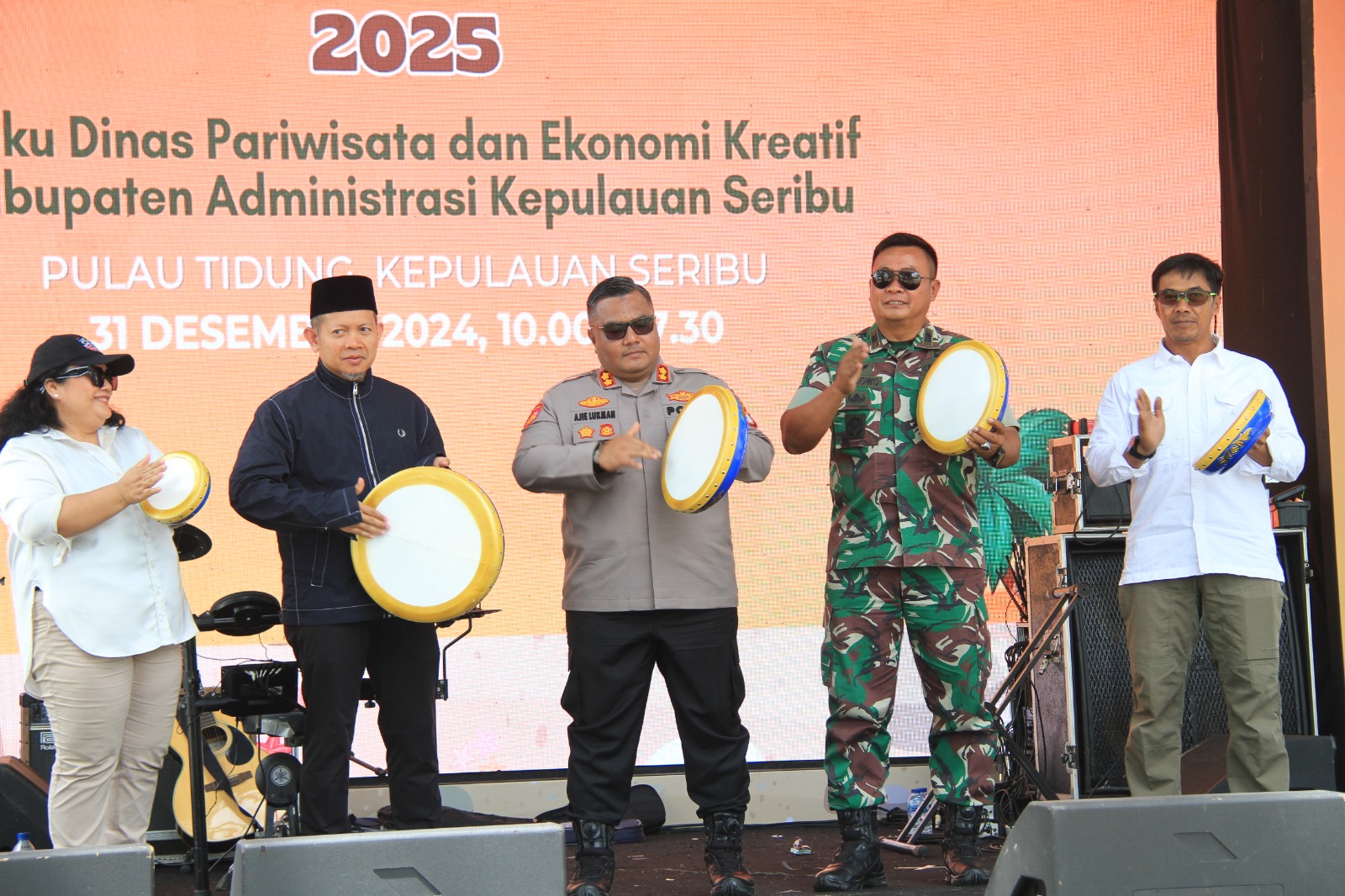 Plt Bupati Kepulauan Seribu, Muhammad Fadjar Churniawan didampingi Muspikab Kepulauan Seribu membuka acara panggung hiburan rakyat dalam rangka Men ..