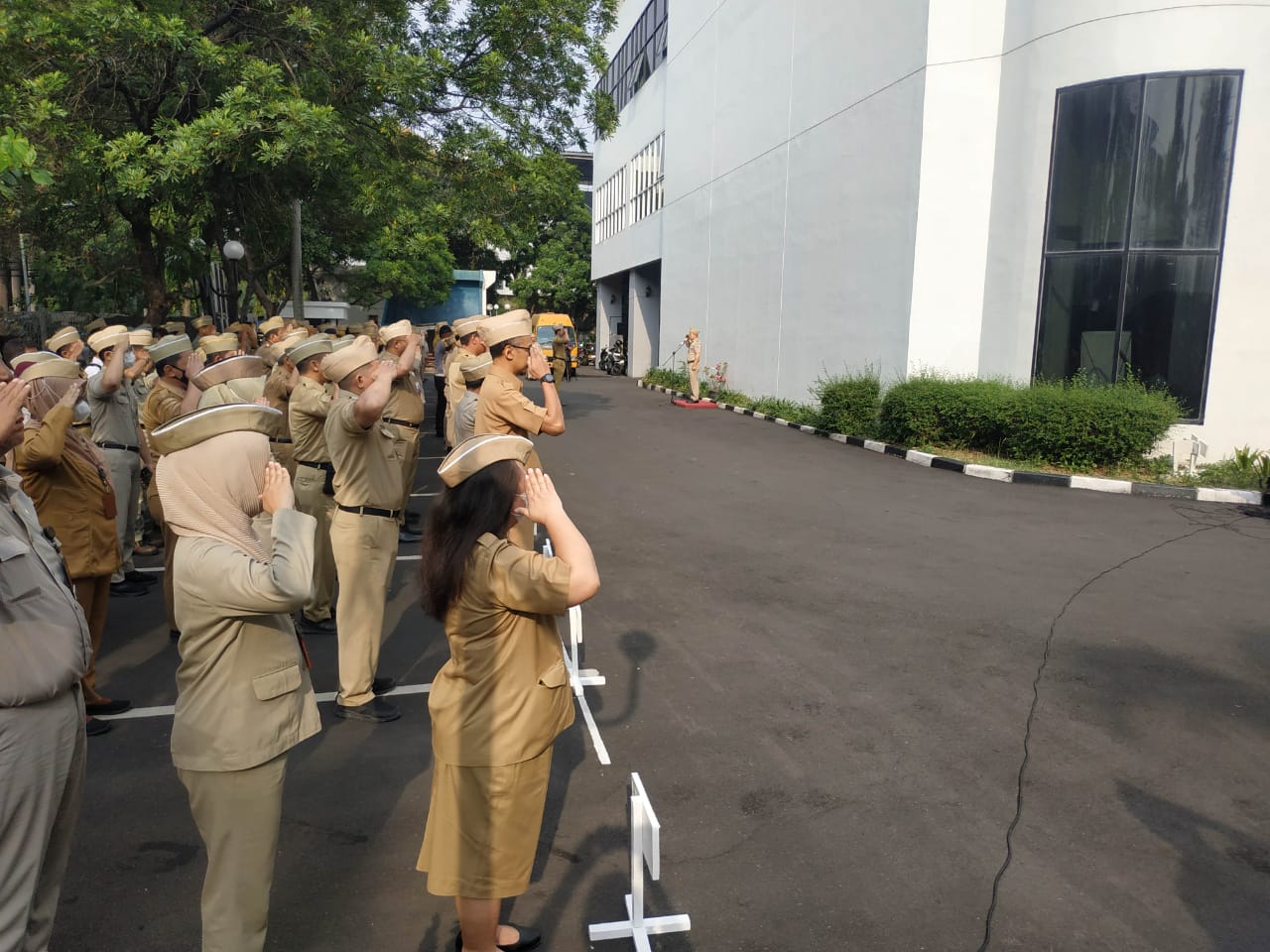 Wakil Bupati Kepulauan Seribu, Muhammad Fadjar Churniawan memimpin Apel Pagi Pegawai di halaman Gedung Mitra Praja, Jakarta, Senin (14/10/2024).