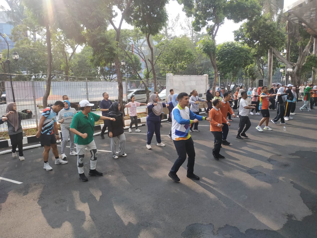 Sekitar 80 Aparatur Sipil Negara (ASN) Kabupaten Kepulauan Seribu mengikuti Senam Kesegaran Jasmani (SKJ) di depan halaman Gedung Mitra Praja, Jaka ..
