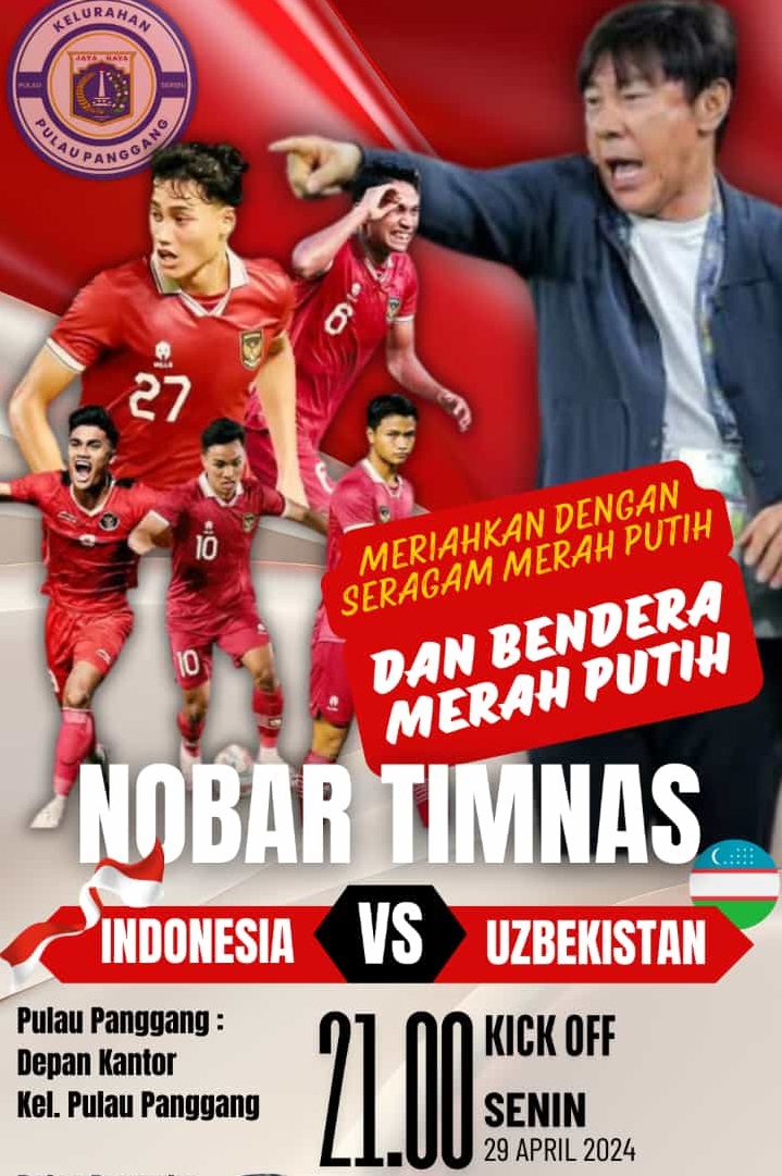 Kelurahan Pulau Panggang, Kecamatan Kepulauan Seribu Utara akan menyelenggarakan kegiatan nonton bareng (nobar) semifinal Piala AFC U-23, yang memp ..