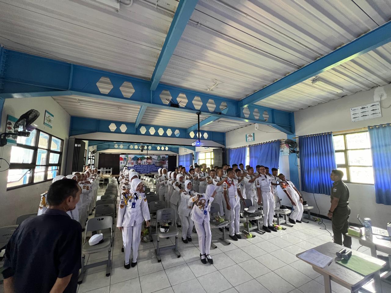 Satuan Polisi Pamong Praja (Satpol PP) Kabupaten Kepulauan Seribu, menggelar kegiatan Satpol PP Goes to School di Sekolah Menengah Kejuruan Negeri ..