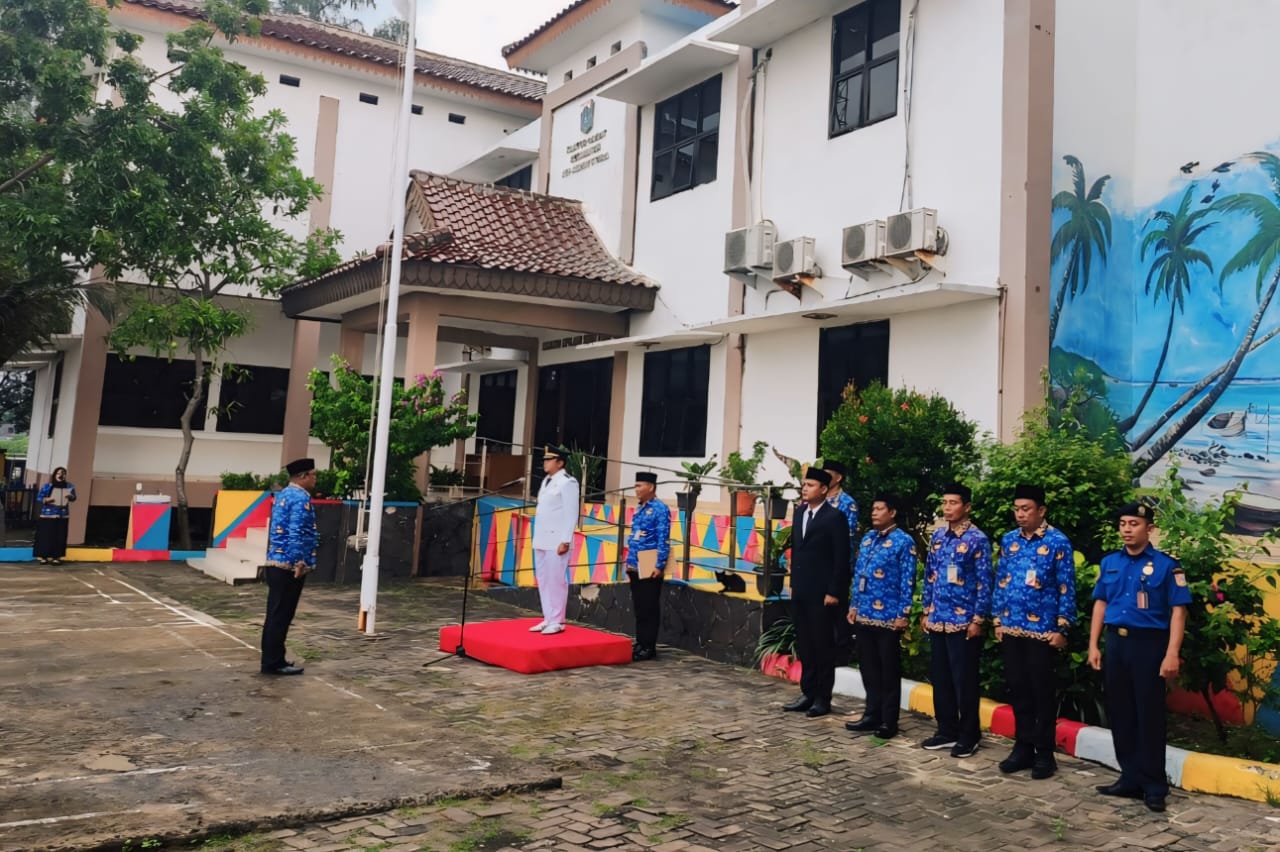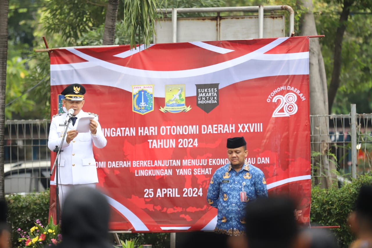Camat Kepulauan Seribu Utara, Angga Saputra pimpin upacara peringatan hari Otonomi Daerah (Otda) ke-28 tahun 2024, yang diselenggarakan di halaman ..