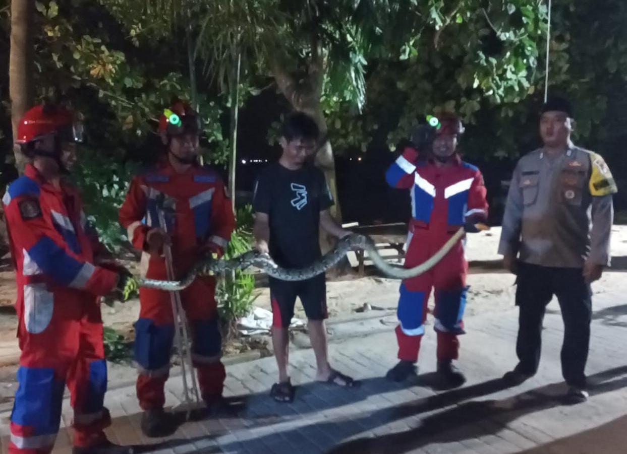 Suku Dinas Penanggulangan Kebakaran dan Penyelamatan (Sudin Gulkarmat) Jakarta Utara dan Kepulauan Seribu, berhasil mengevakuasi ular sanca di Kelu ..