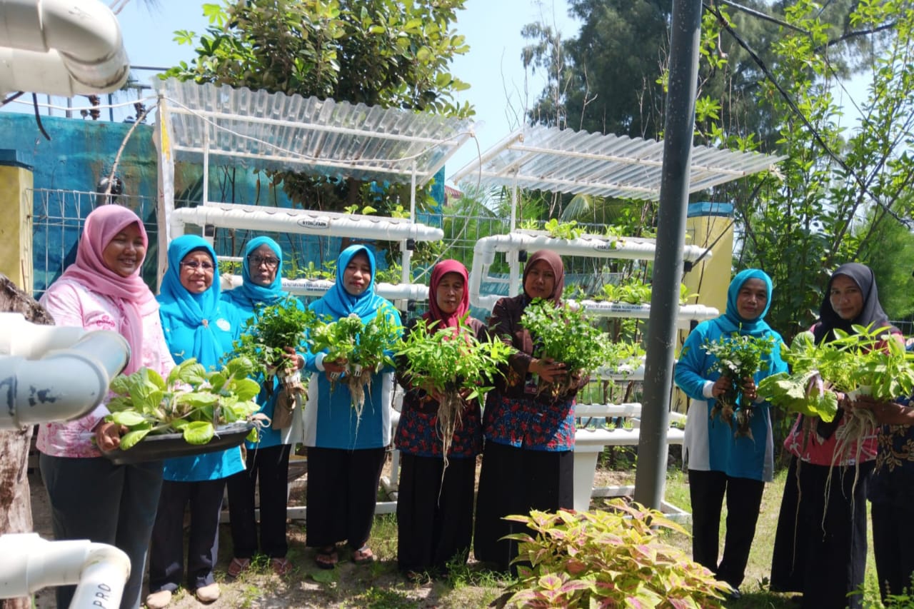 Tim Penggerak (TP) PKK Kelurahan Pulau Panggang, Kecamatan Kepulauan Seribu Utara berhasil panen kangkung dan pakcoy.