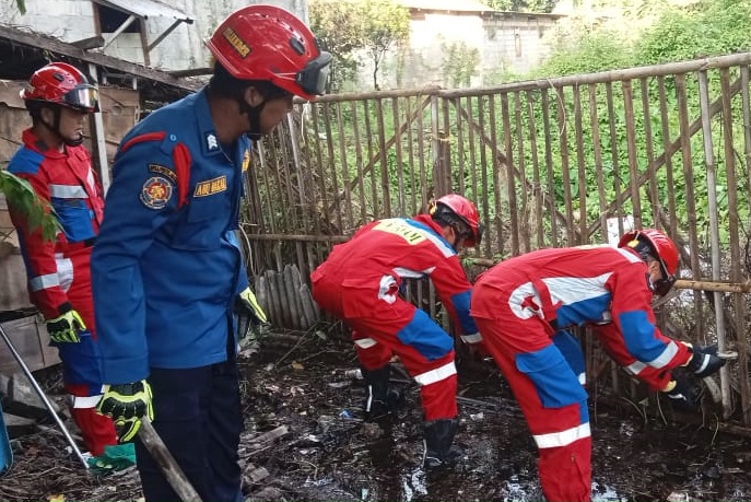 Petugas Suku Dinas Penanggulangan Kebakaran dan Penyelamatan (Sudin Gulkarmat) Jakarta Utara dan Kepulauan Seribu, berhasil mengevakuasi ular sanca ..