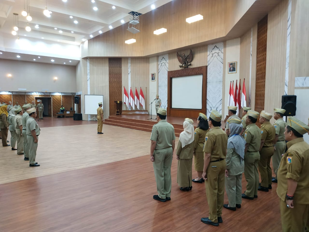 Wakil Bupati Kepulauan Seribu, Muhammad Fadjar Churniawan memimpin apel pagi pegawai Aparatur Sipil Negara (ASN) di Ruang Penyu, Gedung Mitra Praja ..