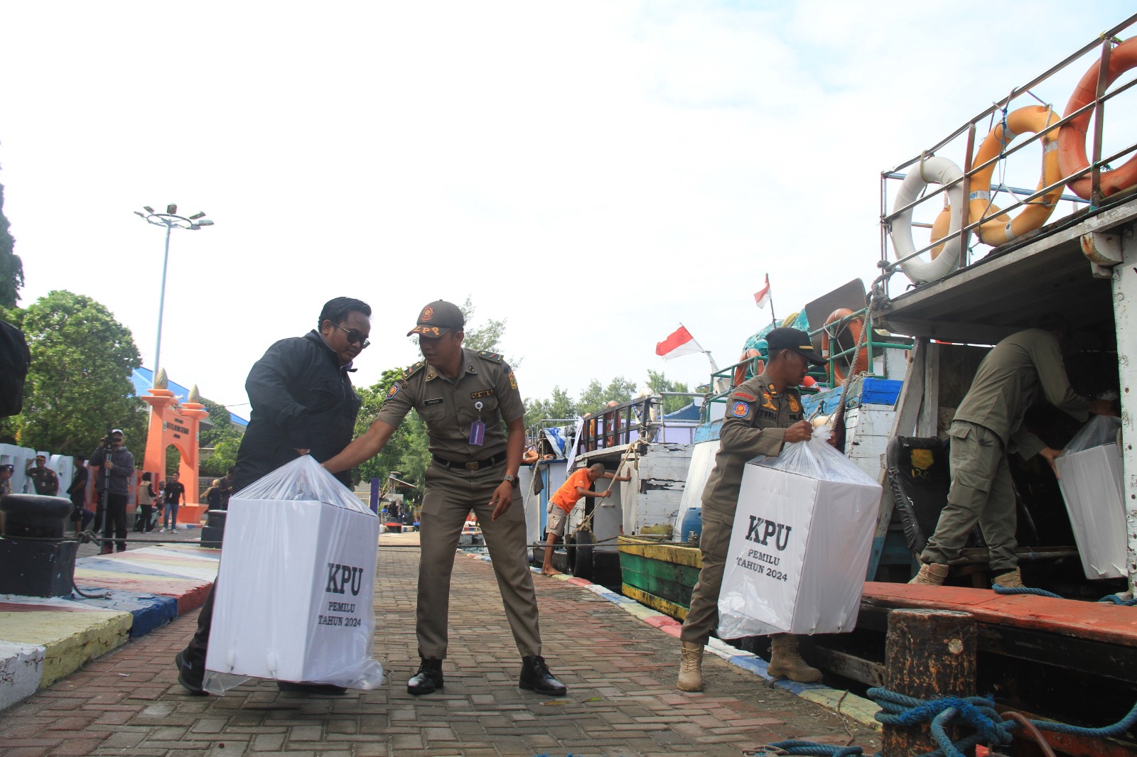 Komisi Pemilihan Umum (KPU) Kepulauan Seribu, mendistribusikan logistik Pemilu Tahun 2024 ke empat kelurahan yang ada di wilayah Kabupaten Kepulaua ..