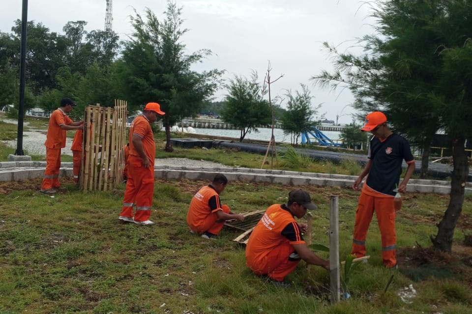 Sebanyak 20 personel PPSU menata Ruang Terbuka Hijau (RTH) di Pantai Indah Kelapa (PIK), Kelurahan Pulau Kelapa, Kecamatan Kepulauan Seribu Utara.< ..