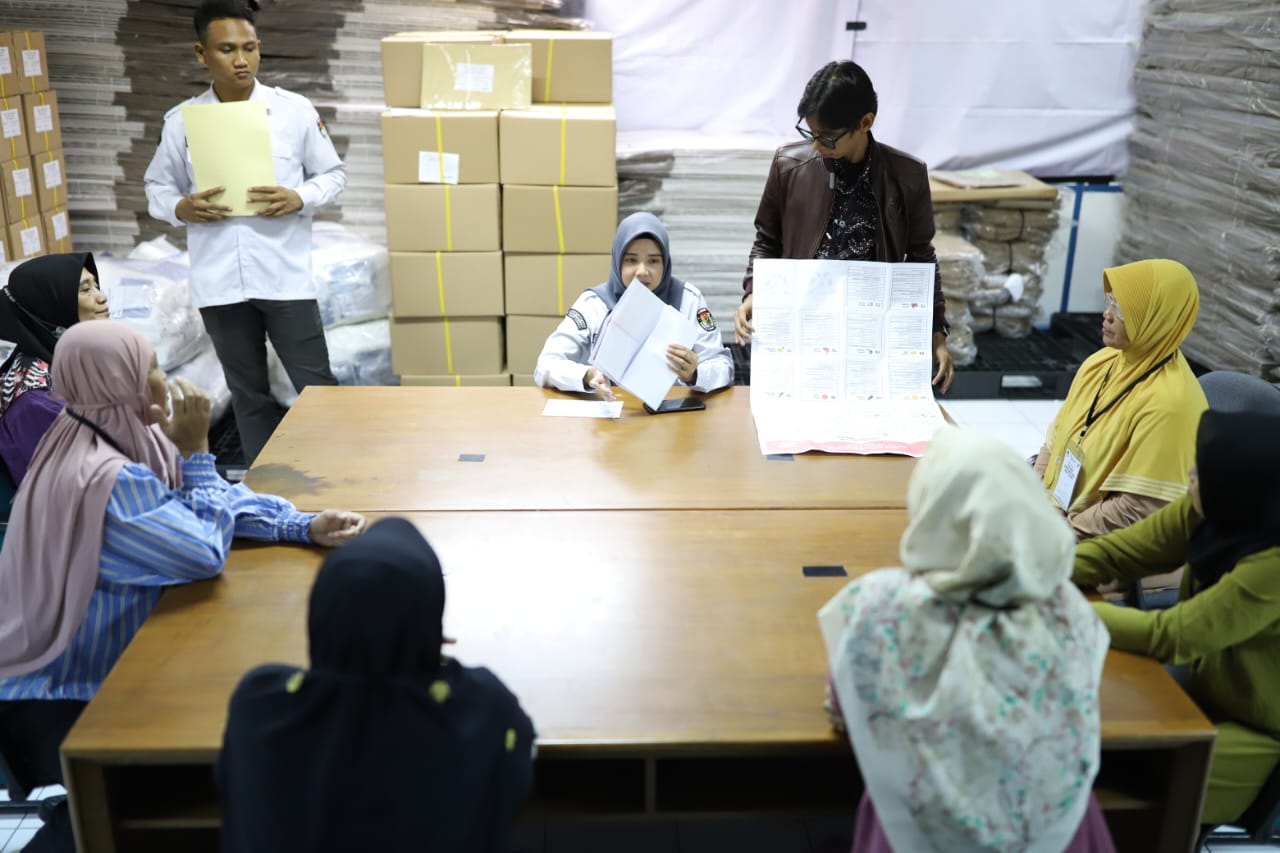 Komisi Pemilihan Umum (KPU) Kepulauan Seribu, melakukan penyortiran dan pelipatan surat suara Pemilihan Umum (Pemilu) 2024 di Gudang Logistik Gedun ..