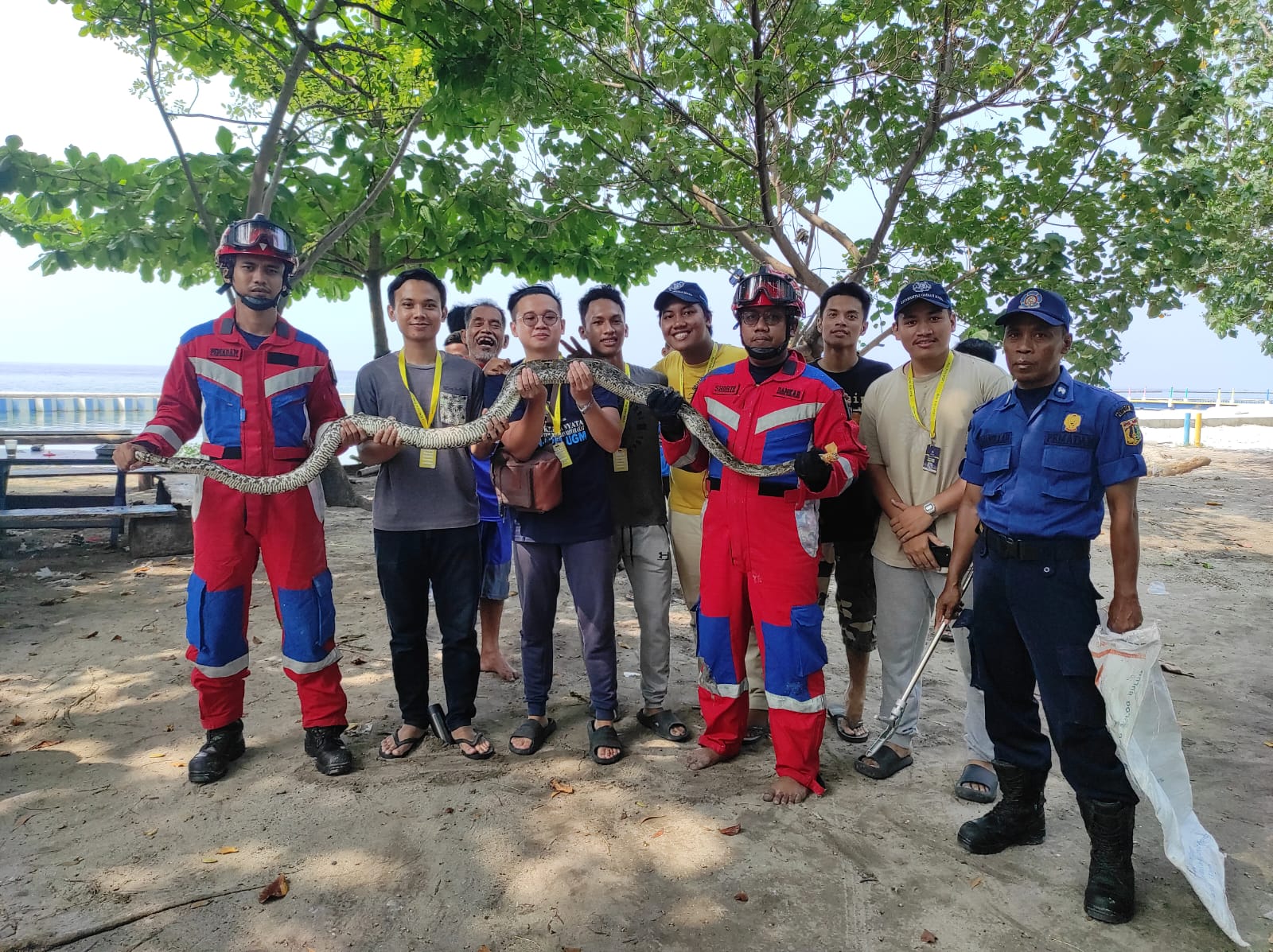 Petugas Suku Dinas Penanggulangan Kebakaran dan Penyelamatan (Sudin Gulkarmat) Jakarta Utara dan Kepulauan Seribu, berhasil mengevakuasi seekor ula ..