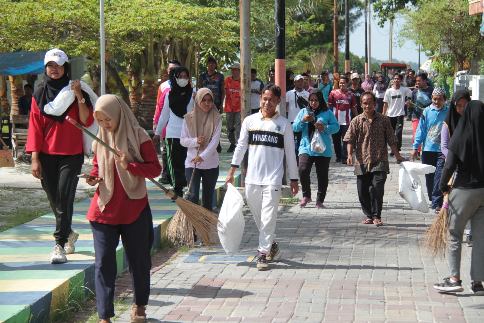 Sekitar 1.550 warga Kelurahan Pulau Panggang, Kecamatan Kepulauan Seribu Utara mengikuti kegiatan gotong royong di wilayah RW 04 dan 05 di Pulau Pr ..