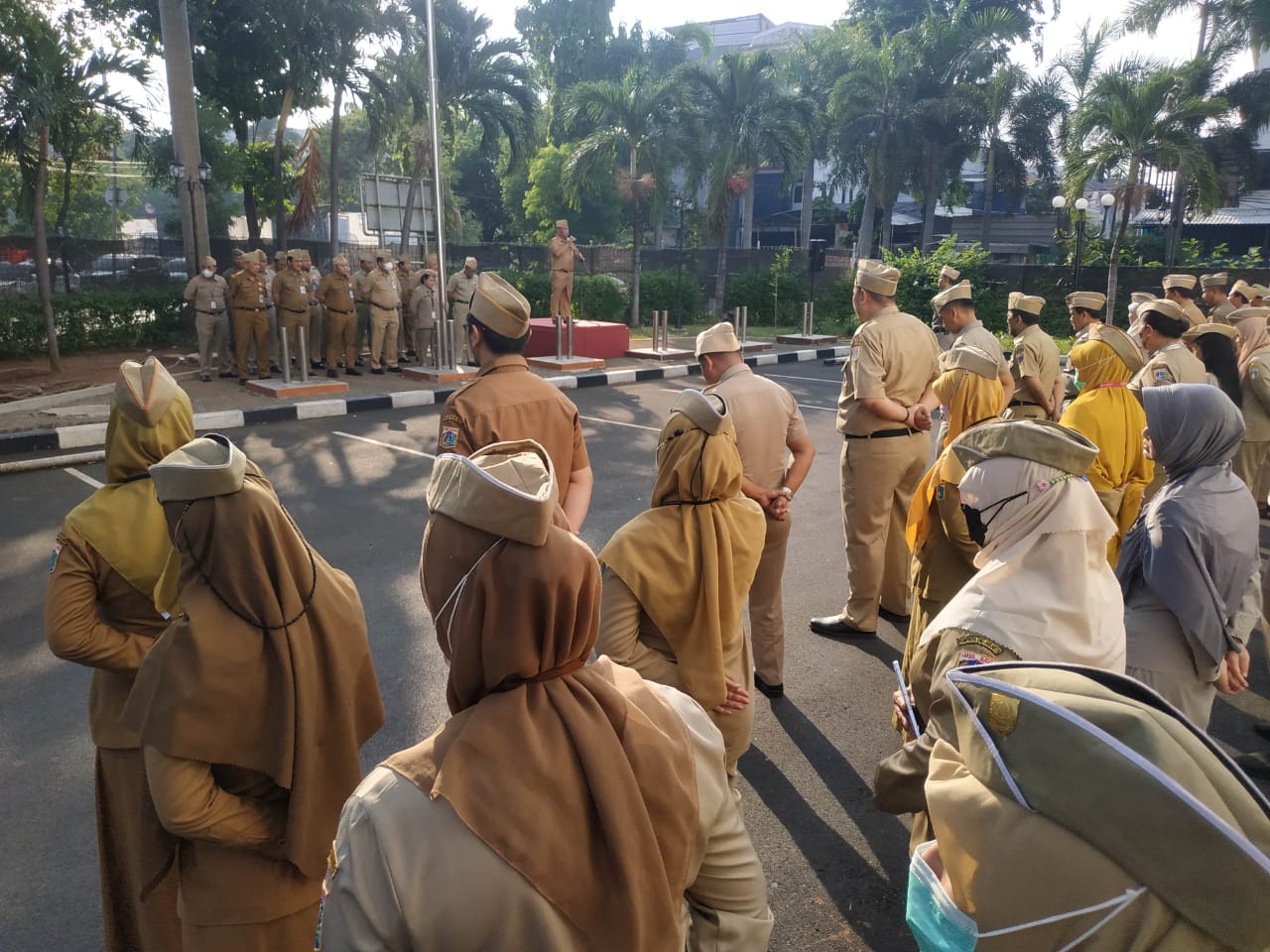 Asisten Administrasi Ekonomi dan Pembangunan (Asminekbang) Kepulauan Seribu, Iwan Samosir memimpin Apel Pagi Pegawai di Halaman Gedung Mitra Praja ..