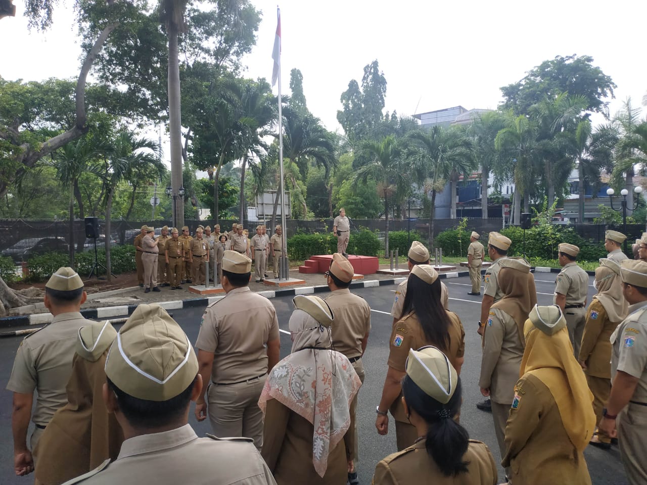 Sekretaris Kabupaten (Sekkab) Kepulauan Seribu, Eric PZ Lumbun memimpin Apel Pagi Pegawai Aparatur Sipil Negara (ASN) di Halaman Gedung Mitra Praja ..