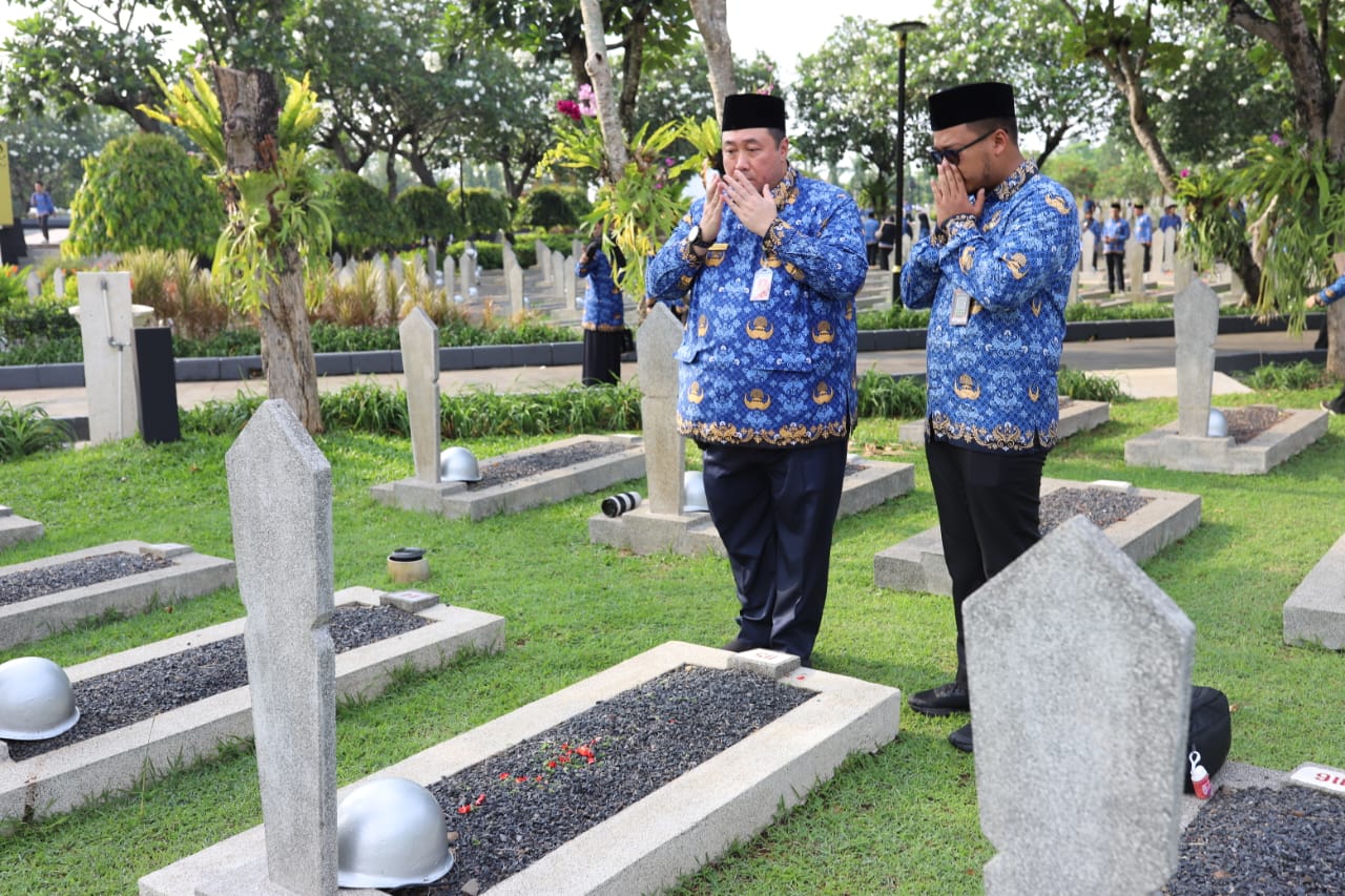 Aparatur Sipil Negara (ASN) di lingkungan Kabupaten Kepulauan Seribu mengikuti ziarah ke Taman Makam Pahlawan (TMP) Kalibata, Pancoran, Jakarta Sel ..