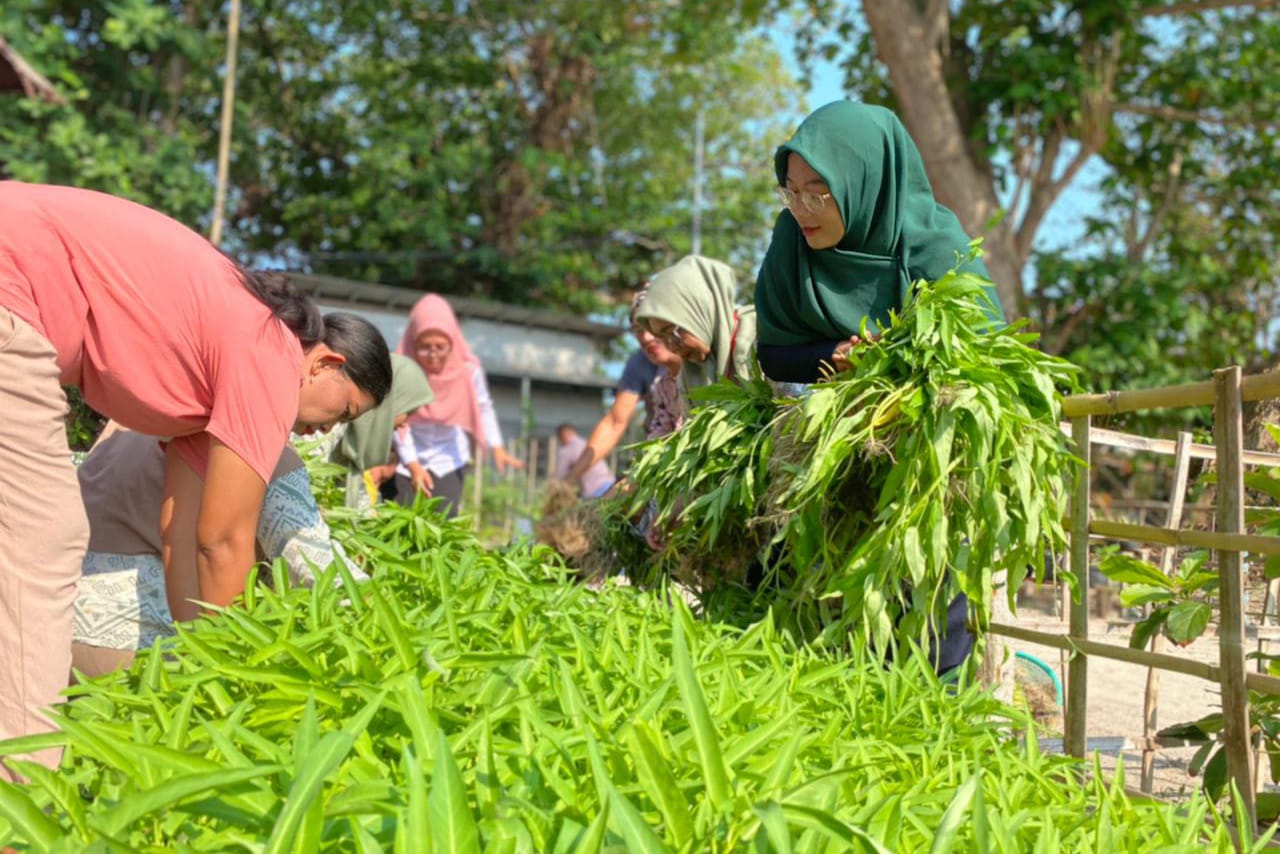 Suku Dinas Ketahanan Pangan, Kelautan, dan Pertanian (Sudin KPKP) Kepulauan Seribu melakukan panen bersama sayuran kangkung, sebanyak 24 kilog ..