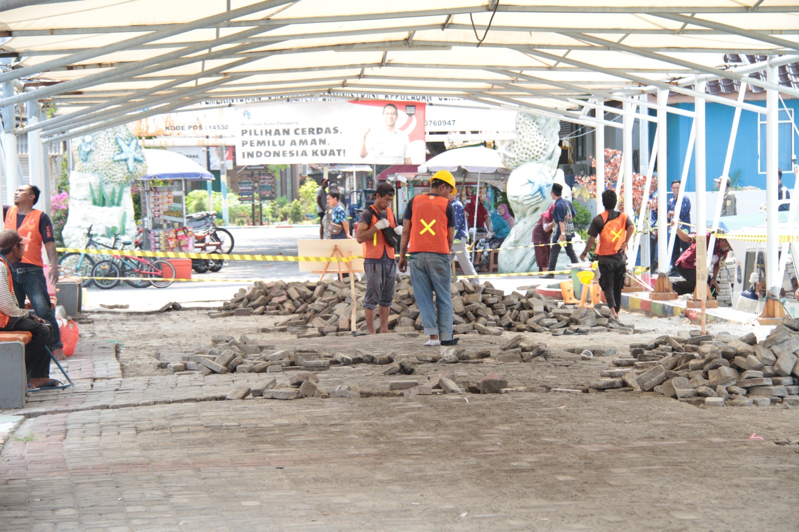 Sudin Perhubungan Kepulauan Seribu melakukan perawatan dan pemeliharaan Dermaga Utama Pulau Pramuka, Kepulauan Seribu Utara.