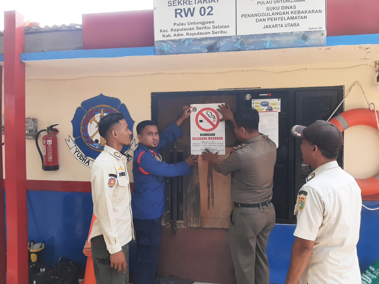 Satuan Polisi Pamong Praja (Satpol PP) Kepulauan Seribu melaksanakan kegiatan sosialisasi penerapan dan kepatuhan pada Kawasan Dilarang Merokok (KD ..