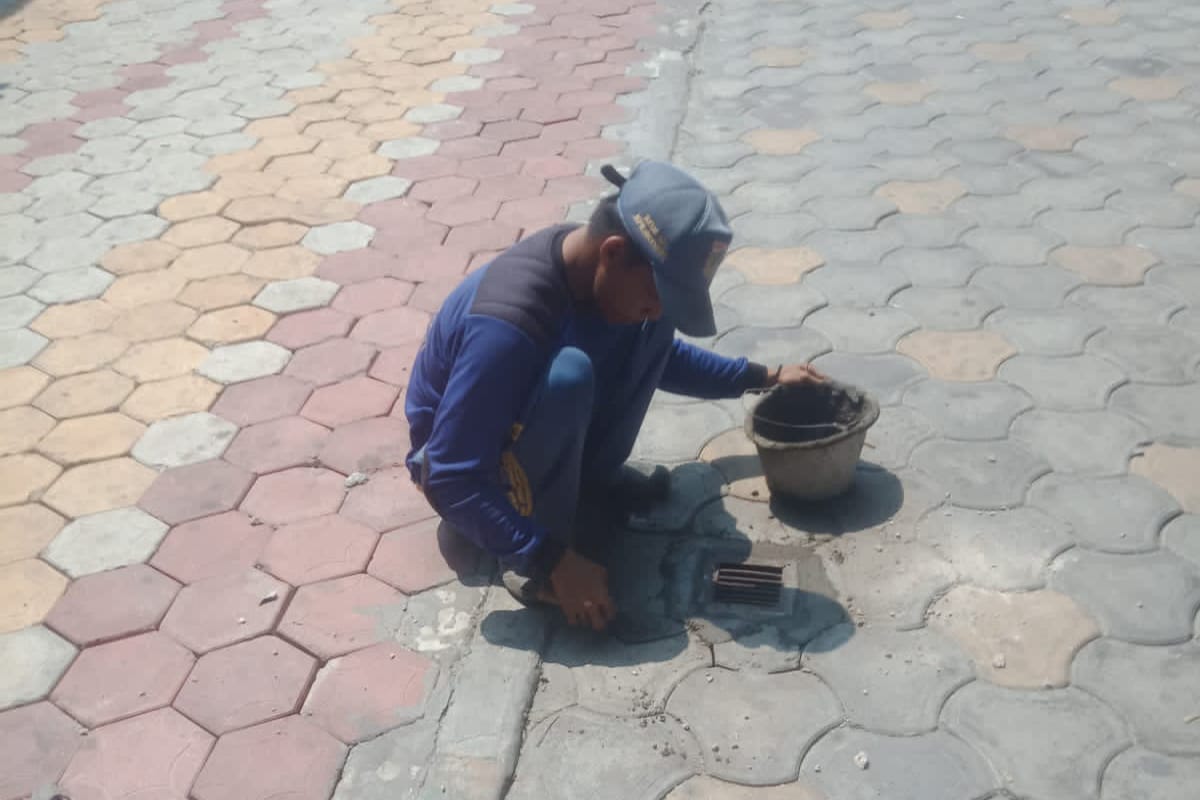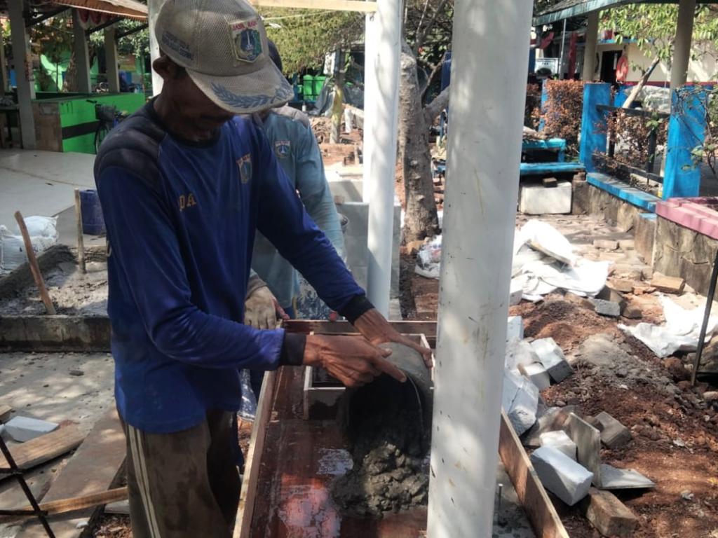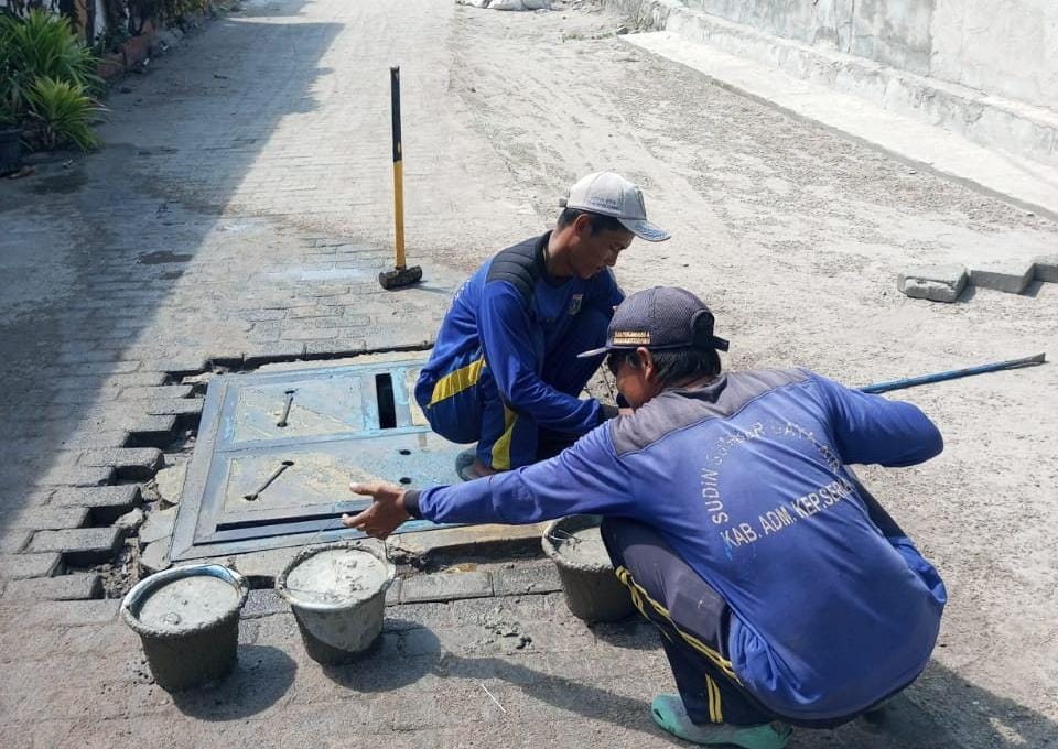 Petugas Suku Dinas Sumber Daya Air (Sudin SDA) Kepulauan Seribu, melakukan perbaikan bak kontrol di Kelurahan Pulau Pari, Kecamatan Kepulauan Serib ..