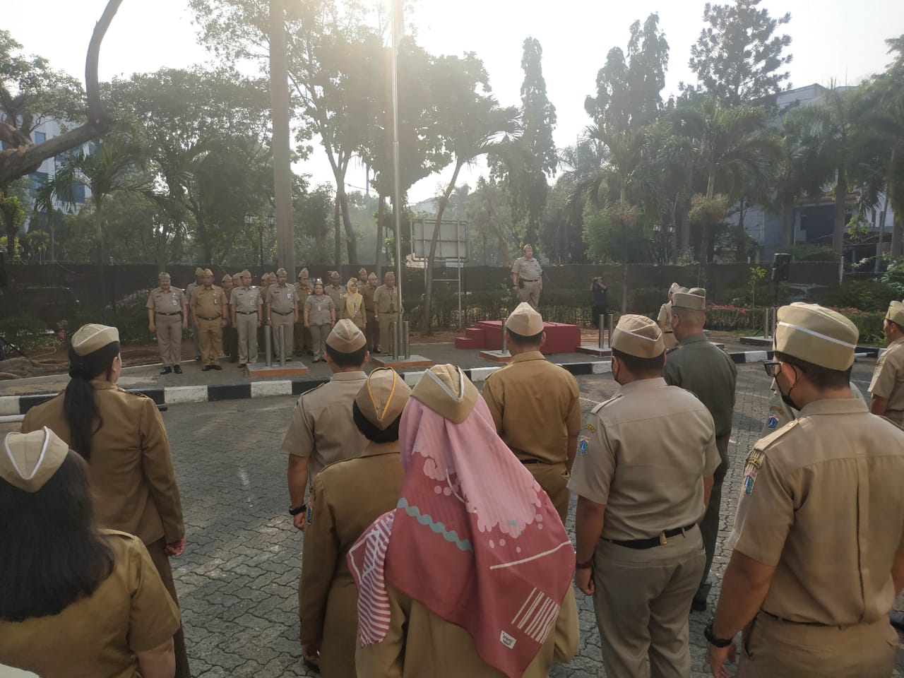 Sekretaris Kabupaten (Sekkab) Kepulauan Seribu, Eric PZ Lumbun memimpin Apel Pagi Pegawai Aparatur Sipil Negara (ASN) di Halaman Gedung Mitra Praja ..