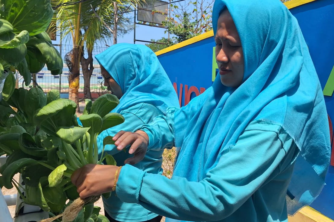 Sayuran pakcoy dan sawi hijau yang ditanam dengan sistem hidroponik di RPTRA Tanjong Timur Pulau Panggang Kepulauan Seribu Utara, habis dibeli warg ..