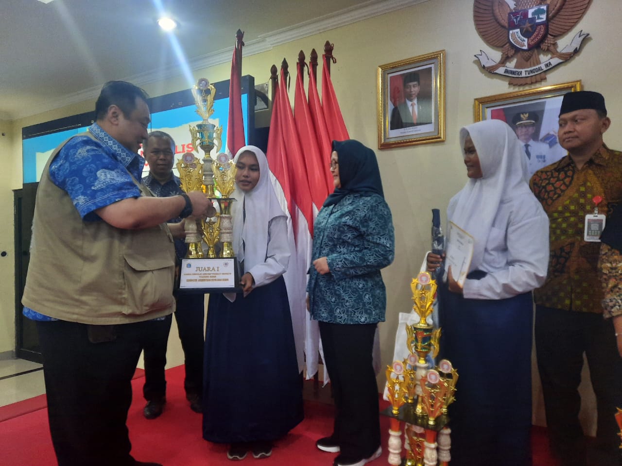 Unit Kerja Teknis (UKT) 1 Kepulauan Seribu menyerahkan hadiah bagi para pemenang lomba menulis cerpen di Ruang Aula Kantor Kabupaten, Pulau Pramuka ..