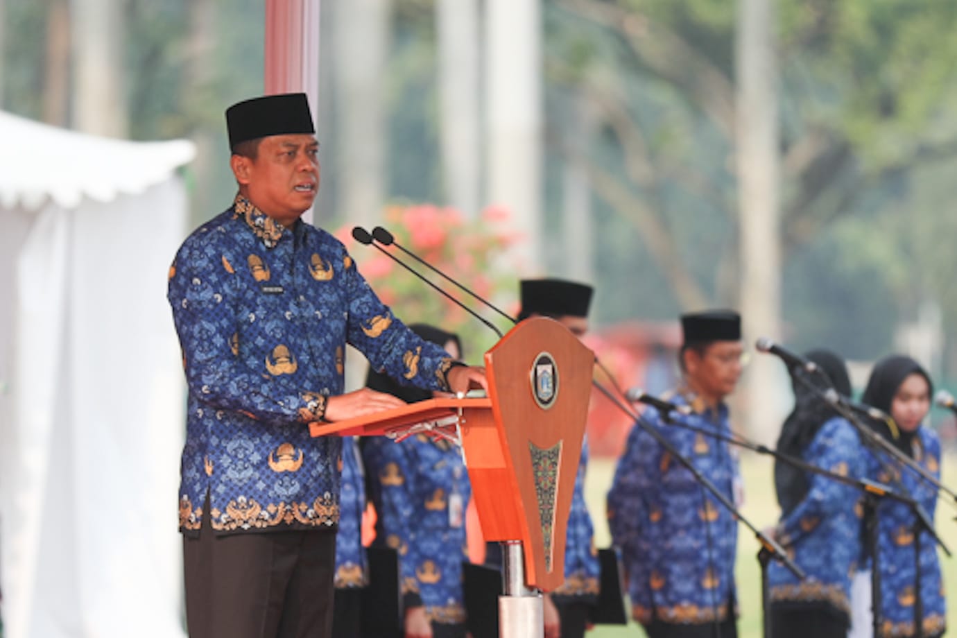 Wakil Bupati Kepulauan Seribu, Muhammad Fadjar Churniawan mengikuti upacara peringatan Hari Rapat Raksasa Ikada ke-78 Tahun 2023, di Lapangan Silan ..