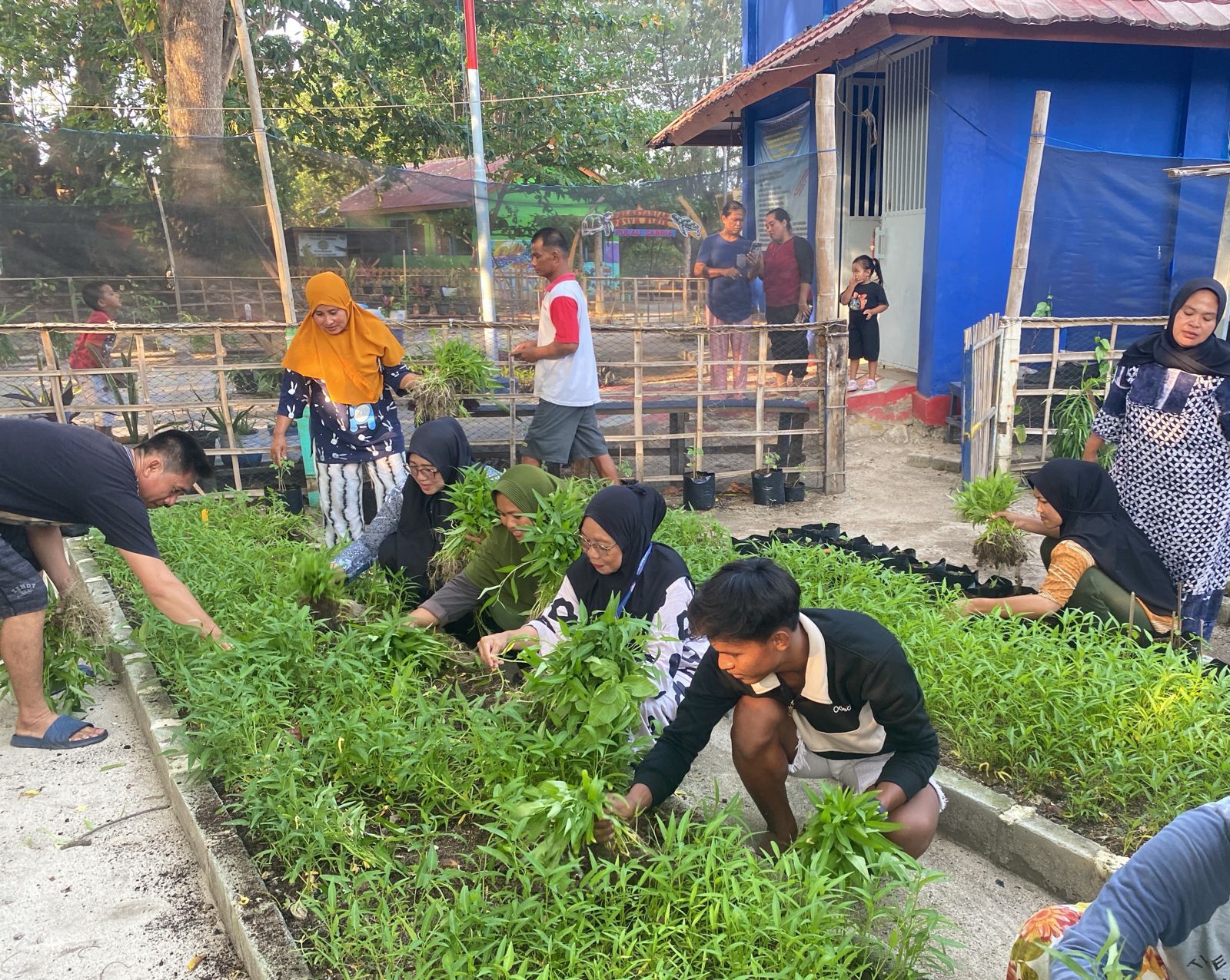 Suku Dinas Ketahanan Pangan Kelautan dan Pertanian (Sudin KPKP) Kepulauan Seribu bersama warga memanen 24 kilogram kangkung dan bayam merah da ..