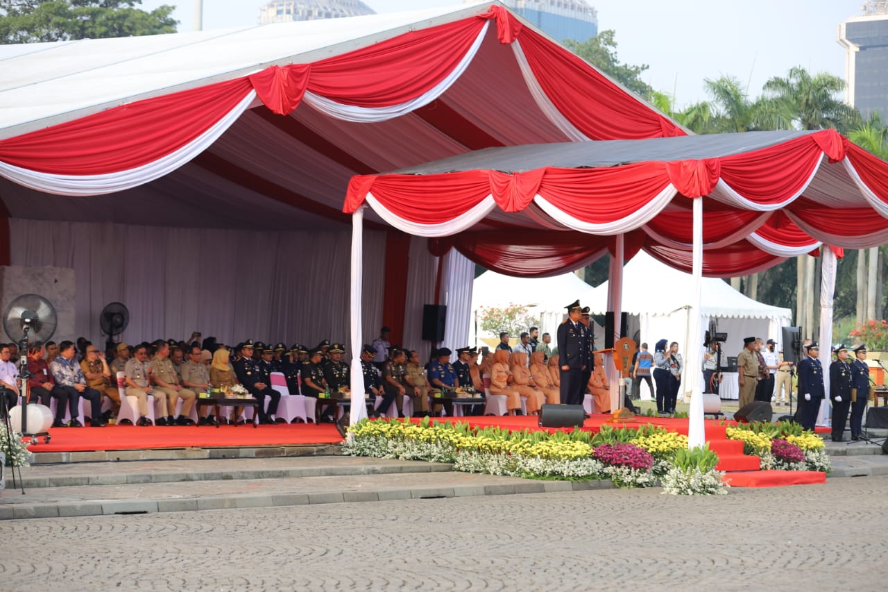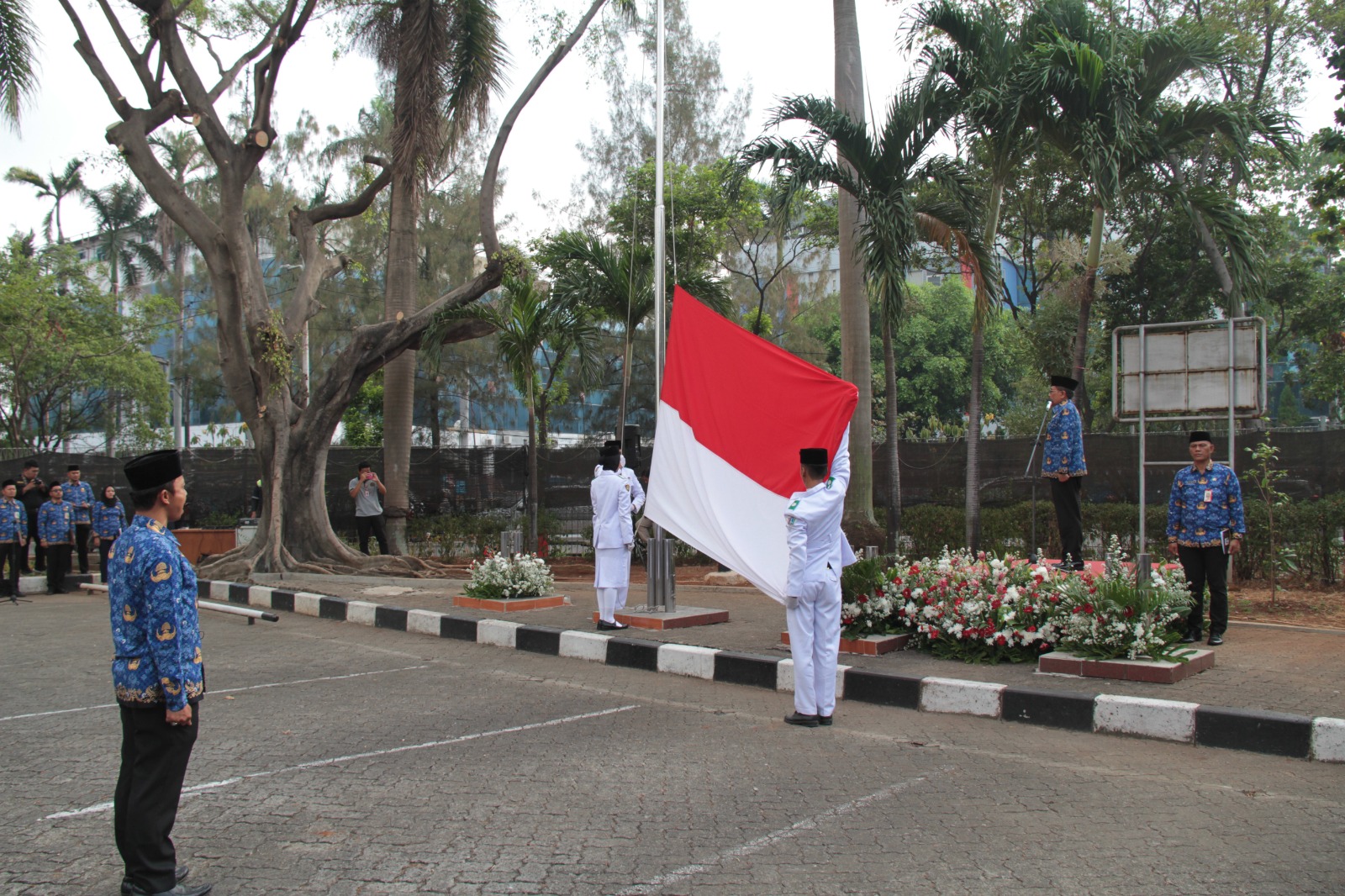 Kabupaten Kepulauan Seribu menyelenggarakan upacara bendera memperingati Hari Rapat Raksasa Ikada ke-78 tahun di Halaman Gedung Mitra Praja, Jakart ..